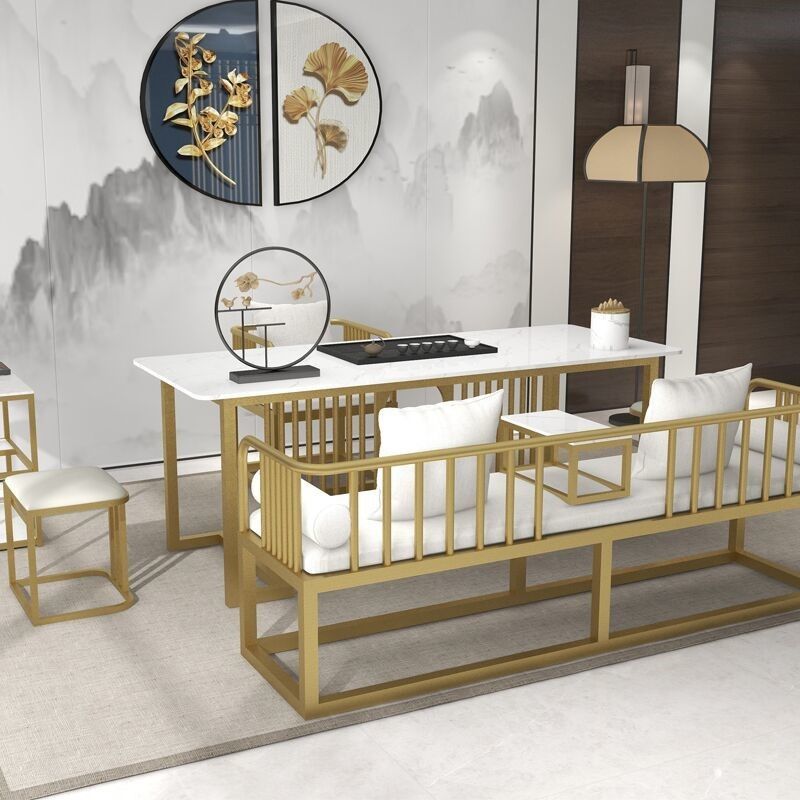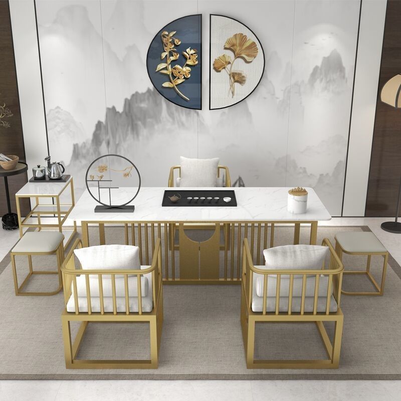 Văn phòng tiếp tân bàn ghế trà một sự kết hợp đẹp sang trọng kung fu trà Bàn trà bộ trà đơn giản mới của Trung Quốc sắt nghệ thuật