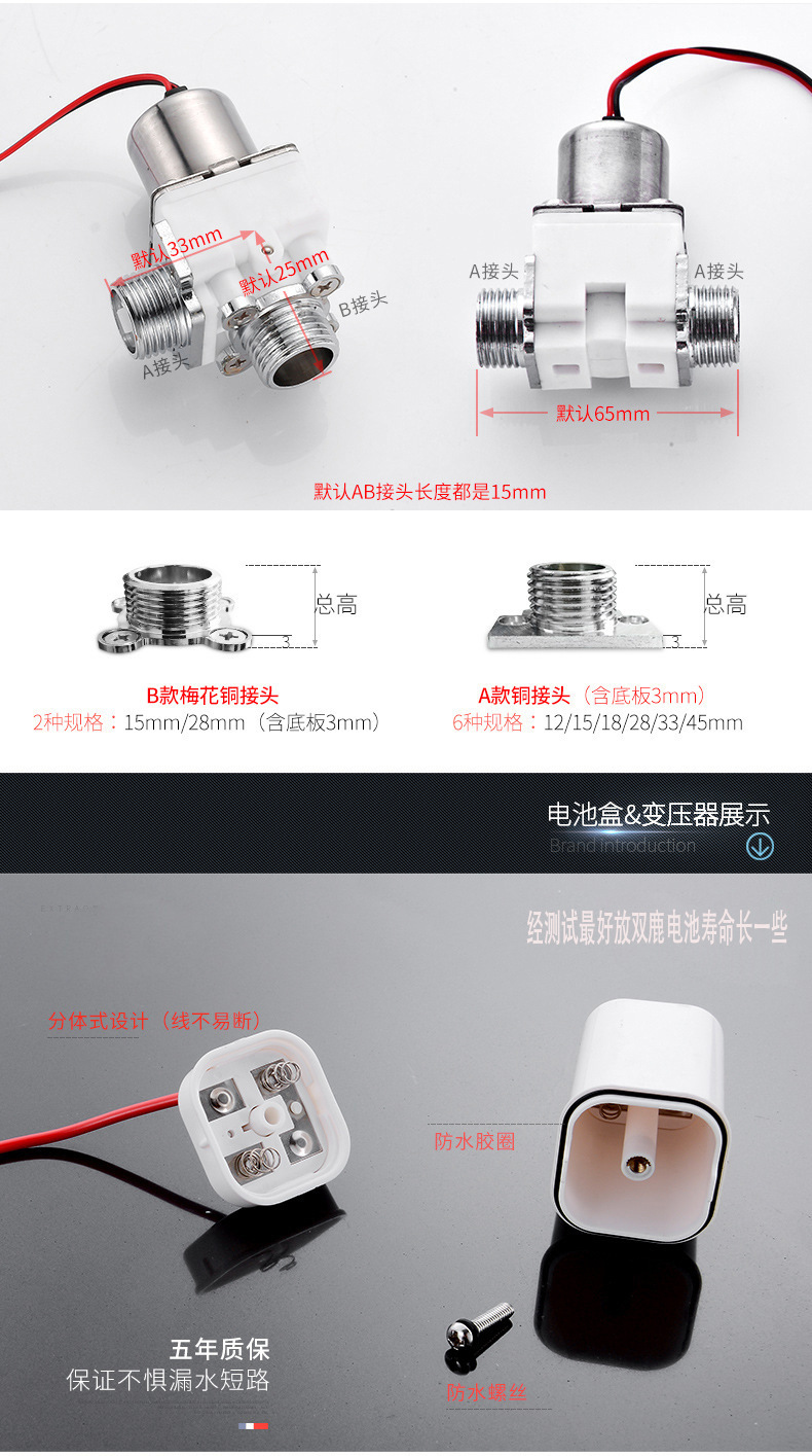 Nên mua đầy đủ phụ kiện: bảng cảm ứng + hộp pin + van điện từ. Thay thế chúng cùng nhau thậm chí còn ổn hơn. (Khoảng cách từ đầu nước vào của van điện từ trên và dưới đến đầu ra nước là 6,5cm. Chưa đo được số liệu của van điện từ trái vào và dưới ra. Quý khách có nhu cầu mua vui lòng liên hệ với bộ phận chăm sóc khách hàng. Vui lòng đo trước khi mua, tránh trường hợp xa không nối được. trên.)