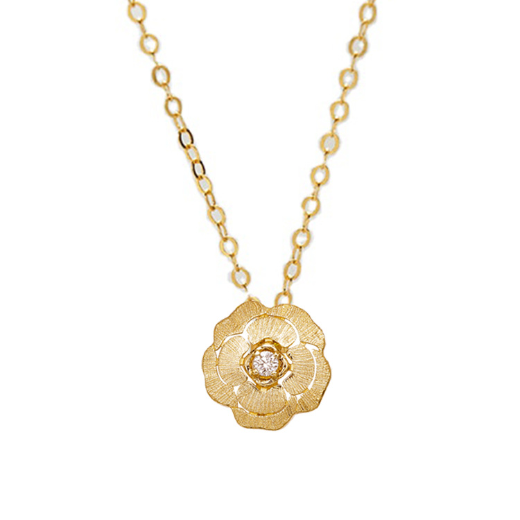 Vàng 18 K Kim Cương Đính Hoa Trà Au750 Vàng Xương Đòn Đa Năng Mặt Dây Chuyền Rõ Ràng Vòng Cổ Vòng Tay Bán Buôn Với Dây Chuyền Bạc 925
