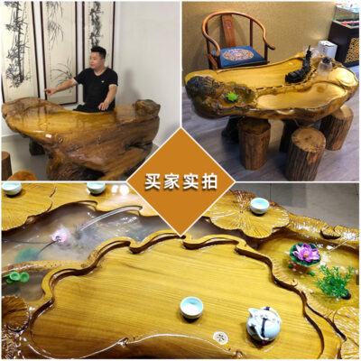 Vàng nanmu bàn trà gốc khắc bàn trà gỗ nguyên cây gốc bàn trà khay trà nước chảy nuôi cá hộ gia đình đầu cây trà biển