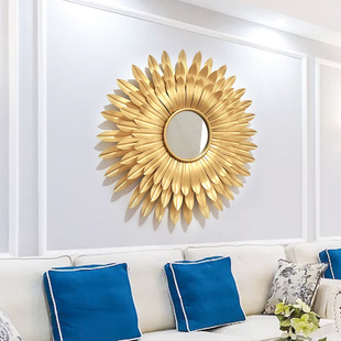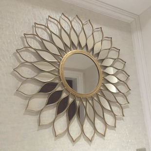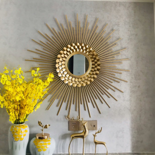 Vàng và bạc hình mặt trời đơn giản TV sofa nền gương treo tường Châu Âu gương trang trí hiên lò sưởi