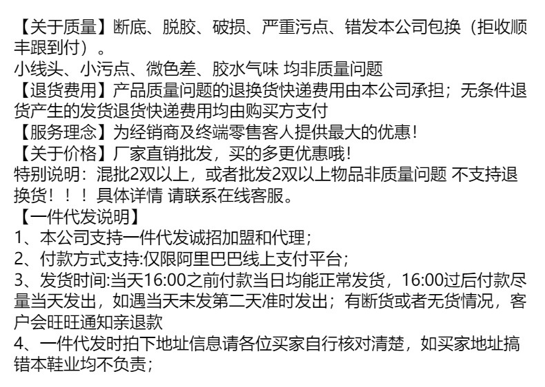 Hoa văn: Đồng màu Nguồn Danh mục: Điểm Bên trong Chất liệu: Không Bên trong Ngoại thương: Có Danh mục sản phẩm: Một phông chữ Màu sắc: Đen/Trắng nhạt/Vàng nhạt/Vàng nhạt Dù còn hàng: Có Kích thước: 35/36/37/38 /39/ 40/40 Quy trình duy nhất: đơn vị kiểm tra chất lượng giày ép phun: sgs chất liệu duy nhất: cao su khối lượng bao bì: 0,1 cho dù đó là nguồn cung cấp độc quyền xuất khẩu xuyên biên giới: yếu tố phổ biến: phương pháp đóng gót bánh nướng xốp: tổng trọng lượng trượt : 0,4 số mặt hàng: D01 bối cảnh áp dụng : Thời gian vận chuyển hàng ngày nhanh nhất: 1 Chất liệu bên trên: PU nhân tạo Nền tảng hạ nguồn chính: ebay/Amazon/wish/AliExpress/Trạm độc lập/LAZADA/LAZADA có nhãn hiệu riêng được ủy quyền: Có Loại hàng tồn kho: Áp dụng cho toàn bộ đơn hàng Nhóm tuổi: Người lớn Chức năng: Thoáng khí Năm Mùa (Thời gian tung ra thị trường): Hè 2023 Phong cách: Đi làm Thời gian giao hàng mới nhất: 4-7 ngày Khu vực bán hàng chính: Châu Phi/Châu Âu/Nam Mỹ/Đông Nam Á/Bắc Mỹ/Đông Bắc Á/ Trung Đông/trung đông