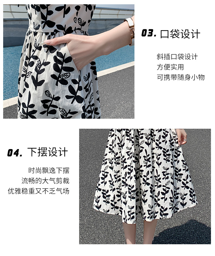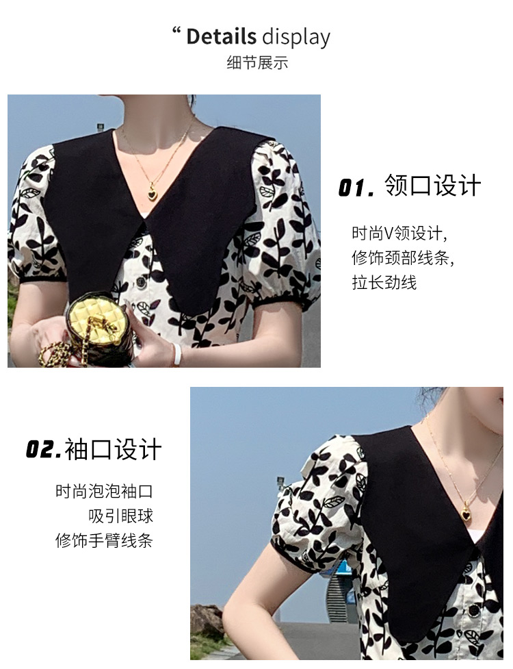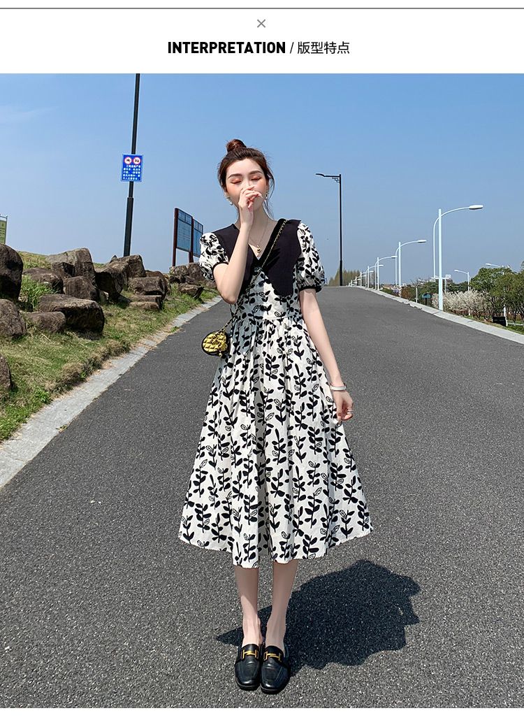 Váy cổ yếm kiểu Pháp 2022 phiên bản mới của Hàn Quốc mùa hè cạp cao cạp cao in hình váy trà cao cấp