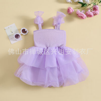 Váy công chúa bốn màu phối lưới mềm mại mùa hè mới dành cho trẻ em
