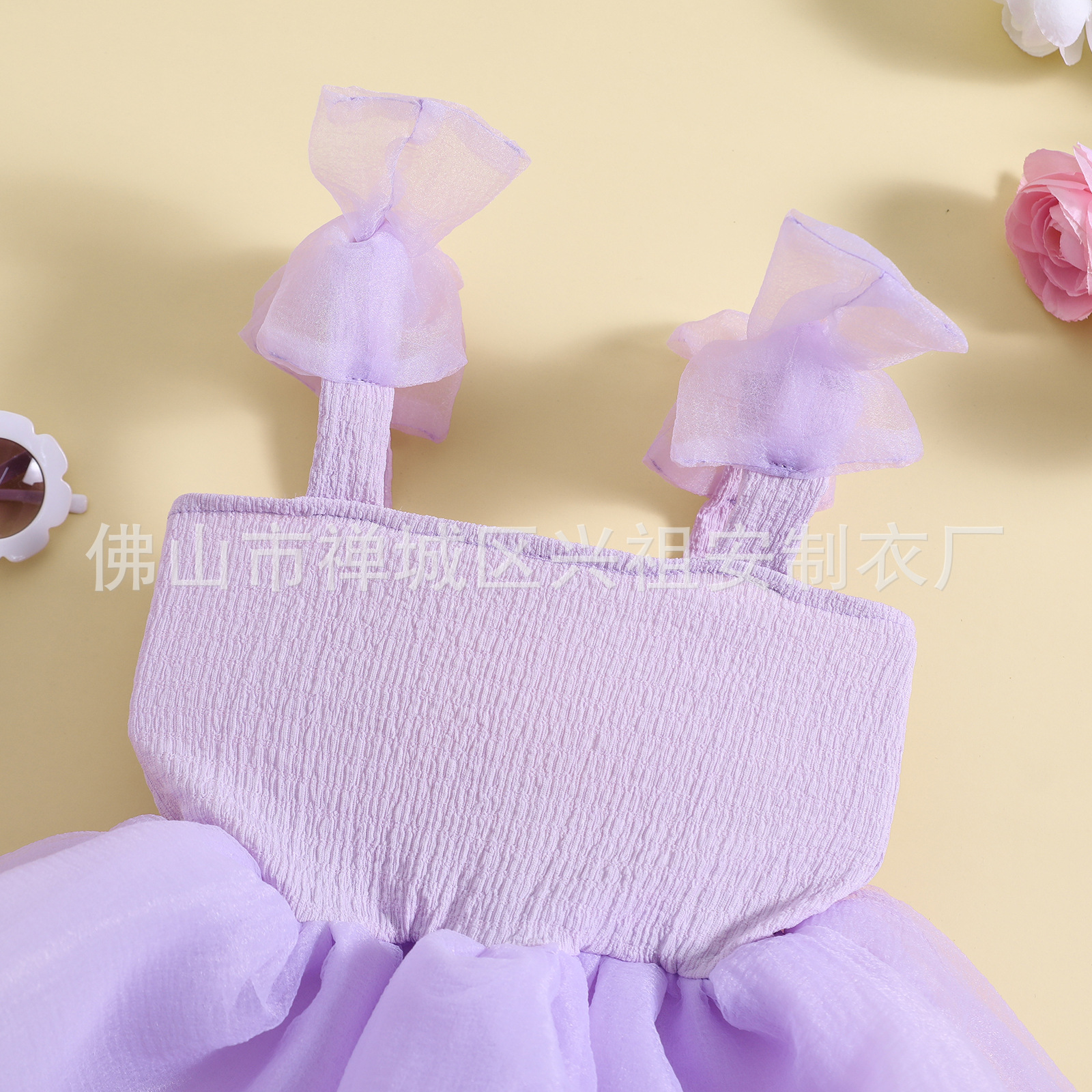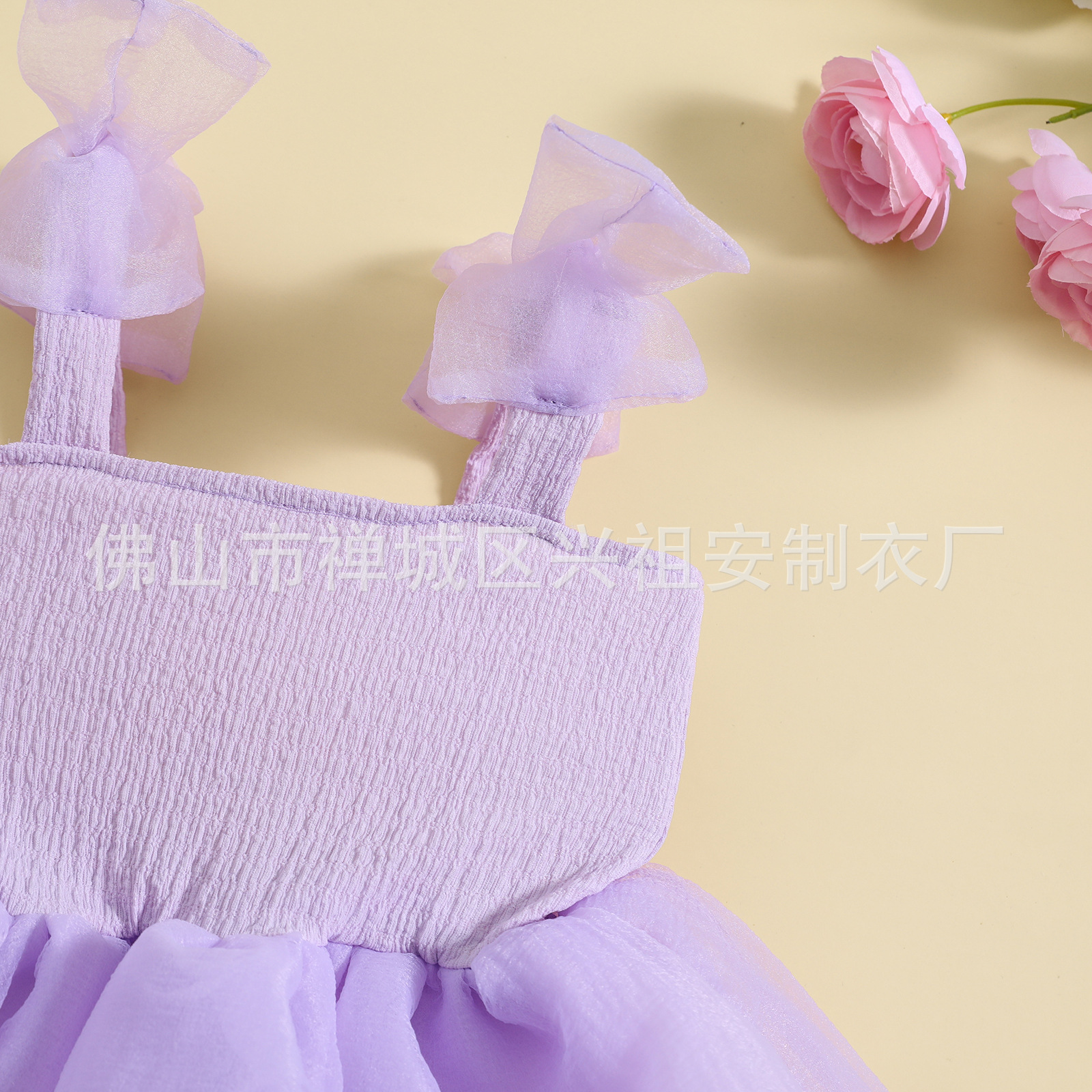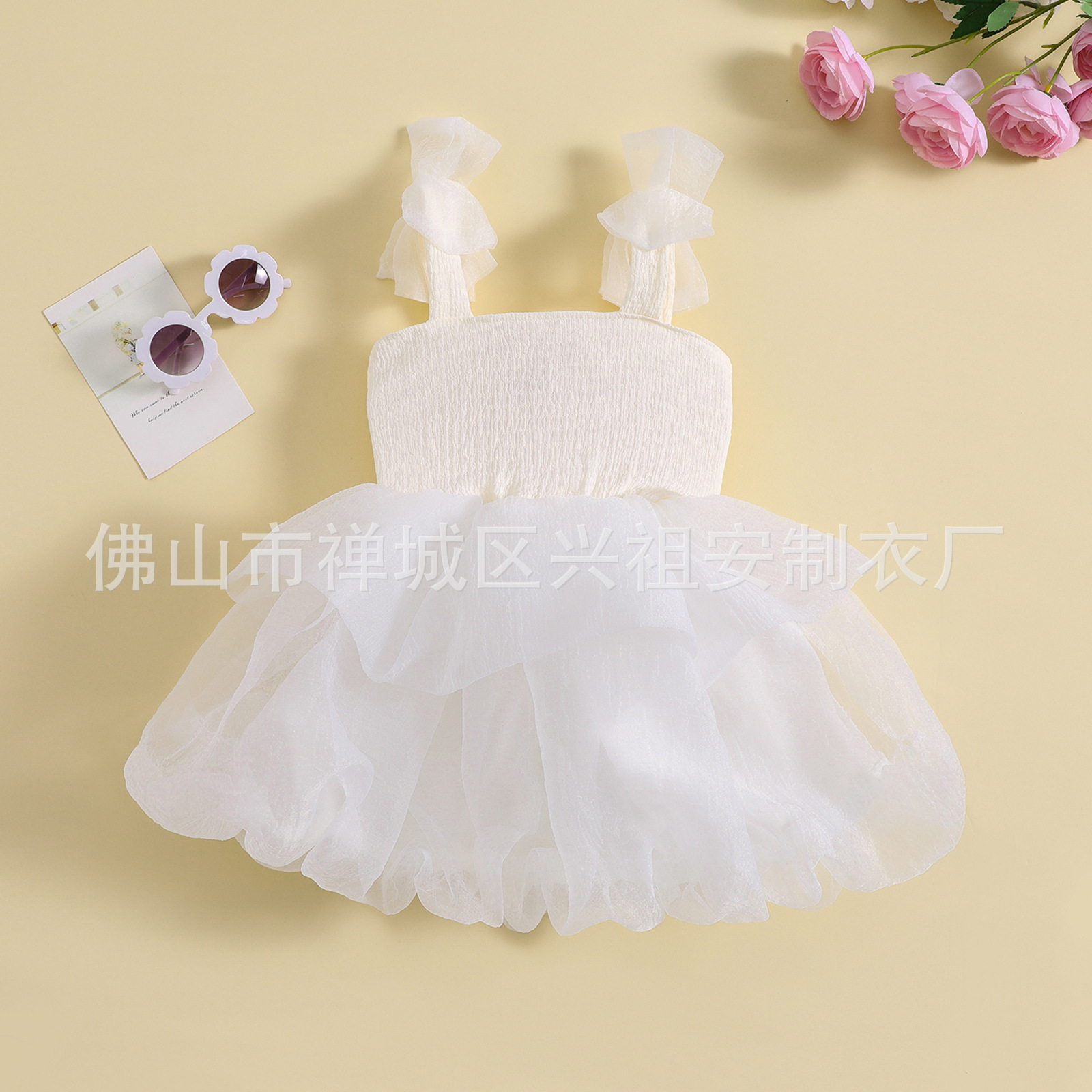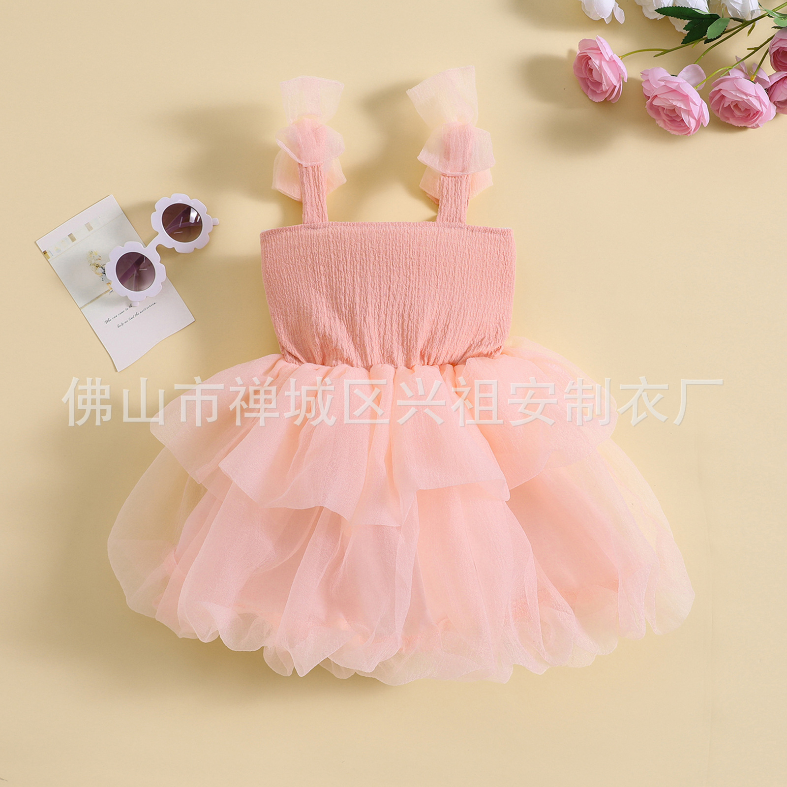 Váy công chúa bốn màu phối lưới mềm mại mùa hè mới dành cho trẻ em