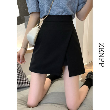 Váy đen xẻ tà phù hợp với phụ nữ mùa hè eo cao túi hông váy ngắn chữ A váy ôm váy quần váy mùa hè