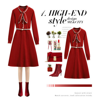 - 颜色分类: 红色 黑色 外套(预售5天) 娃娃领红色连衣裙 黑色娃娃领连衣裙