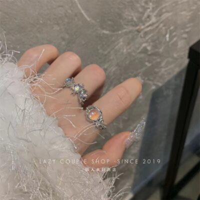 Vẻ đẹp dưới ánh trăng khảm kết cấu đá mặt trăng vòng mở kết cấu không đều kết cấu trong suốt hốc vòng gió lạnh