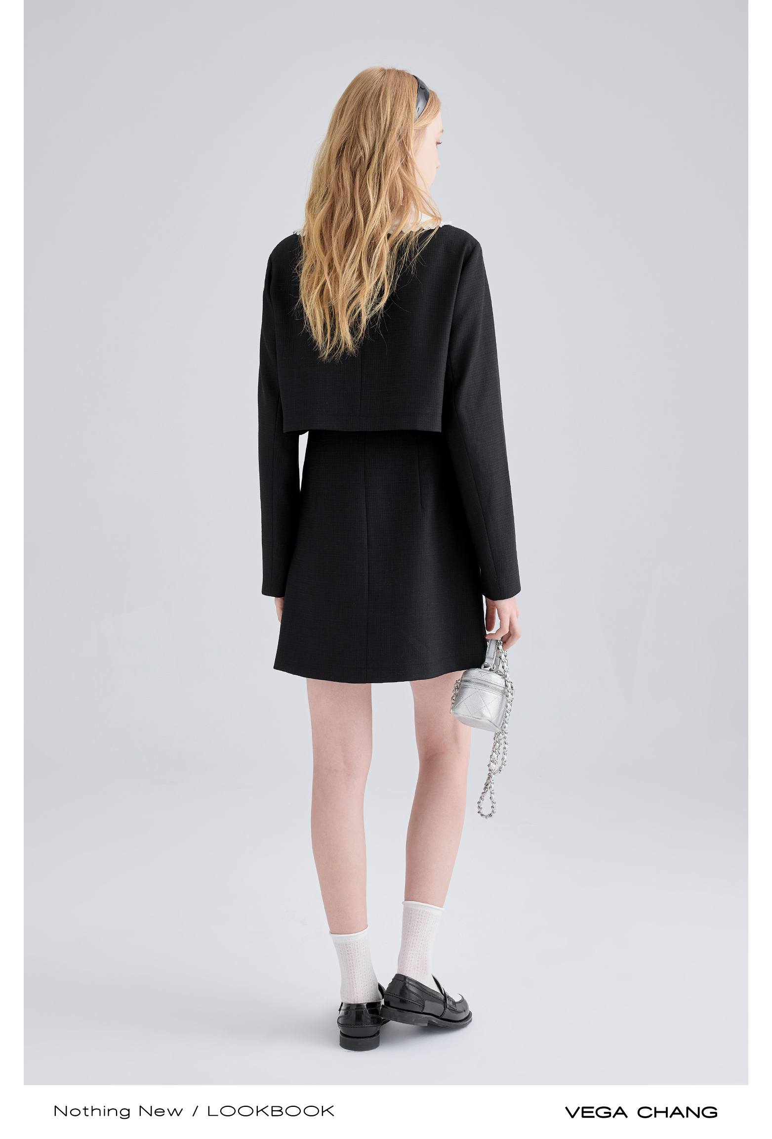 VEGA CHANG2023年初秋新款女裝小香風短外套百褶裙時尚兩件式套裝裙