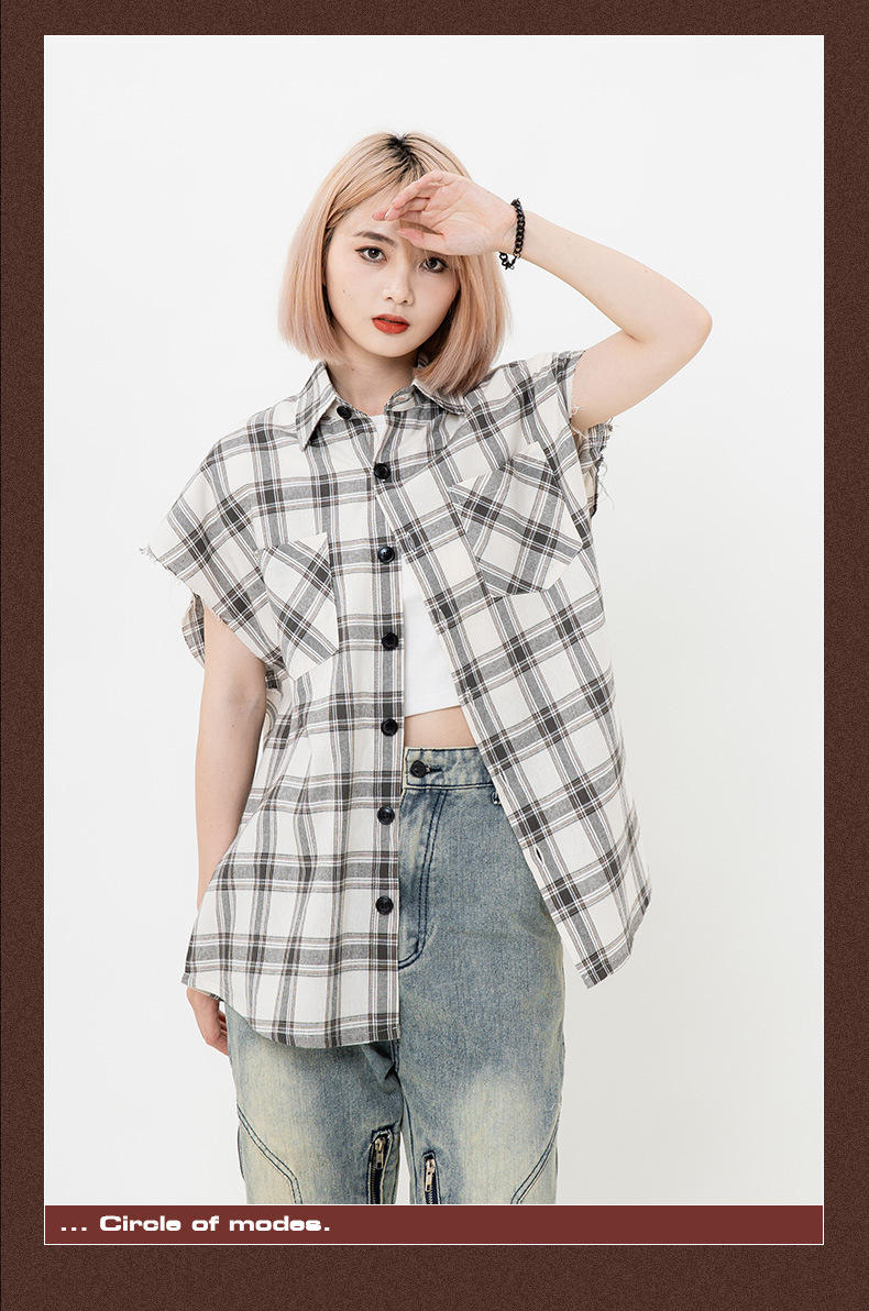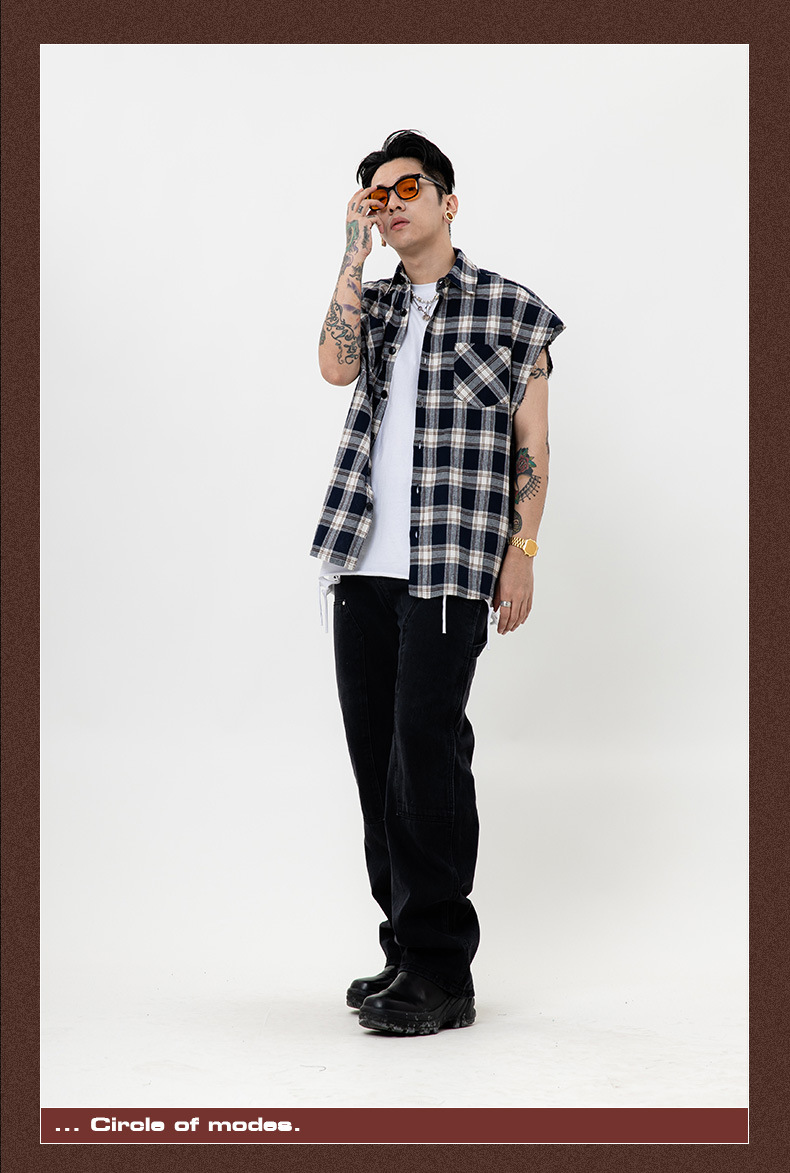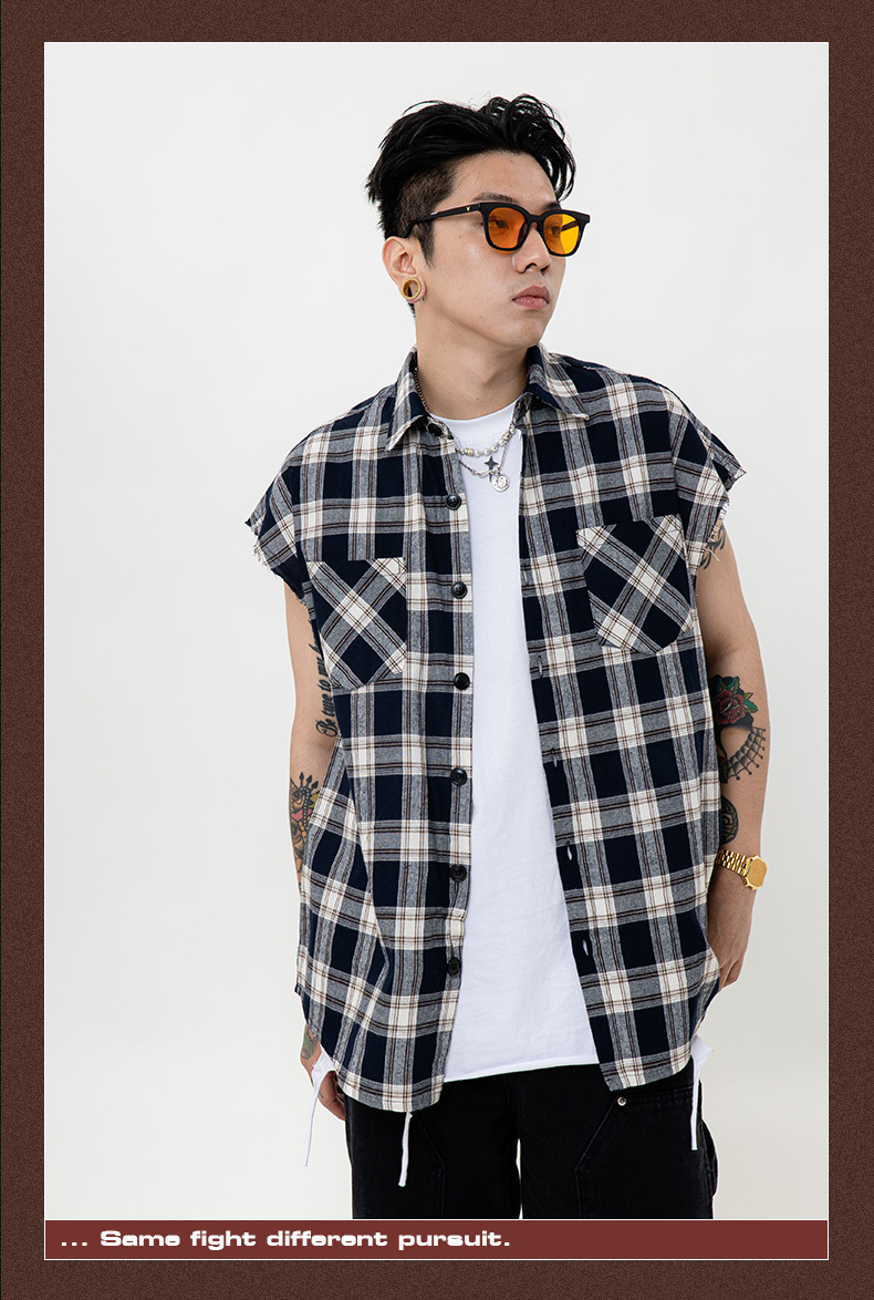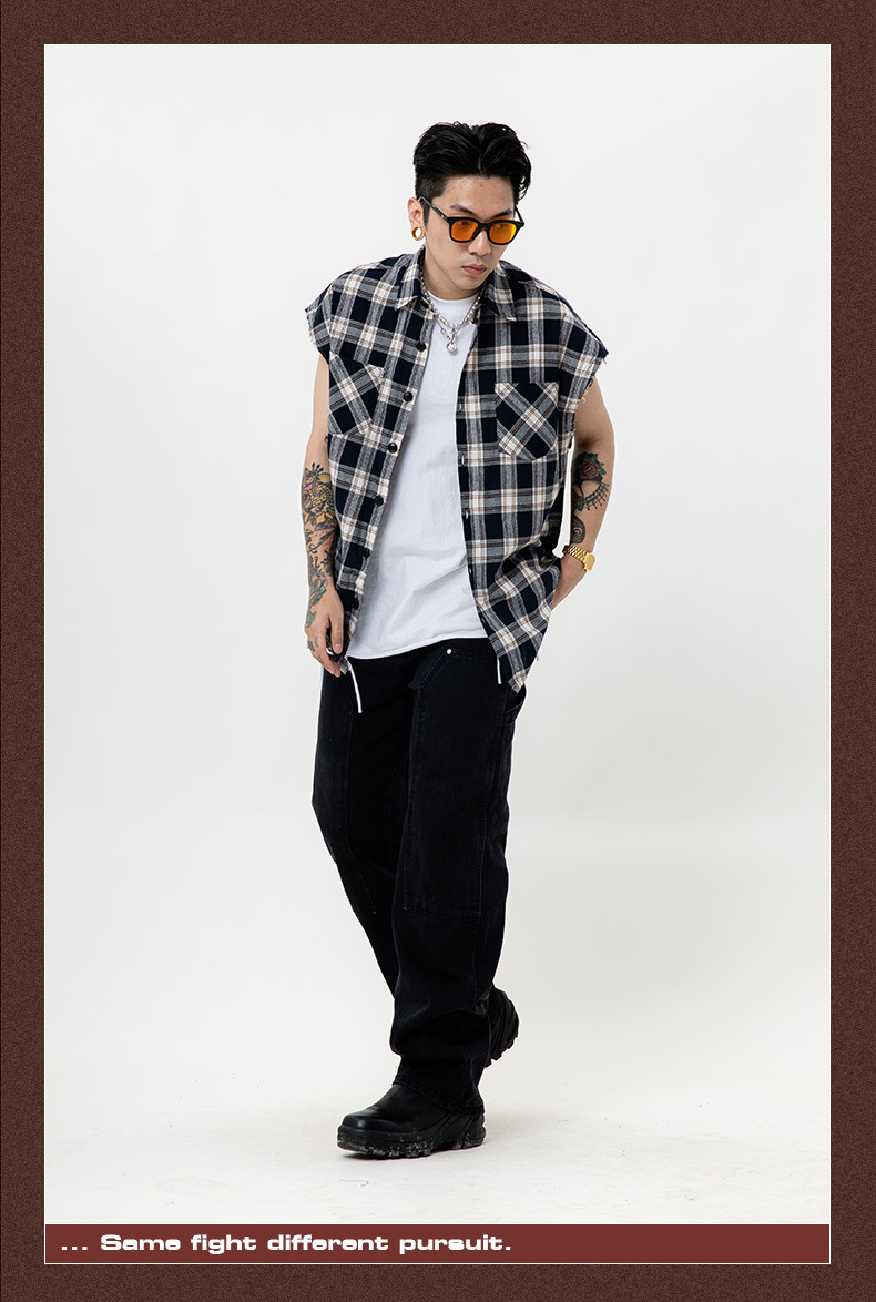 Vegorrs Mỹ Retro Áo Vest Áo Sơ Mi Kẻ Sọc Rời Áo Vest Tất Cả Các Trận Đấu Có Ve Áo Áo Sơ Mi Nam
