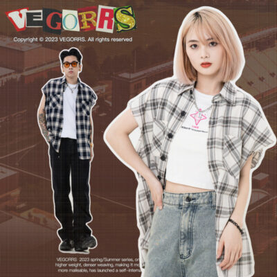Vegorrs Mỹ Retro Áo Vest Áo Sơ Mi Kẻ Sọc Rời Áo Vest Tất Cả Các Trận Đấu Có Ve Áo Áo Sơ Mi Nam