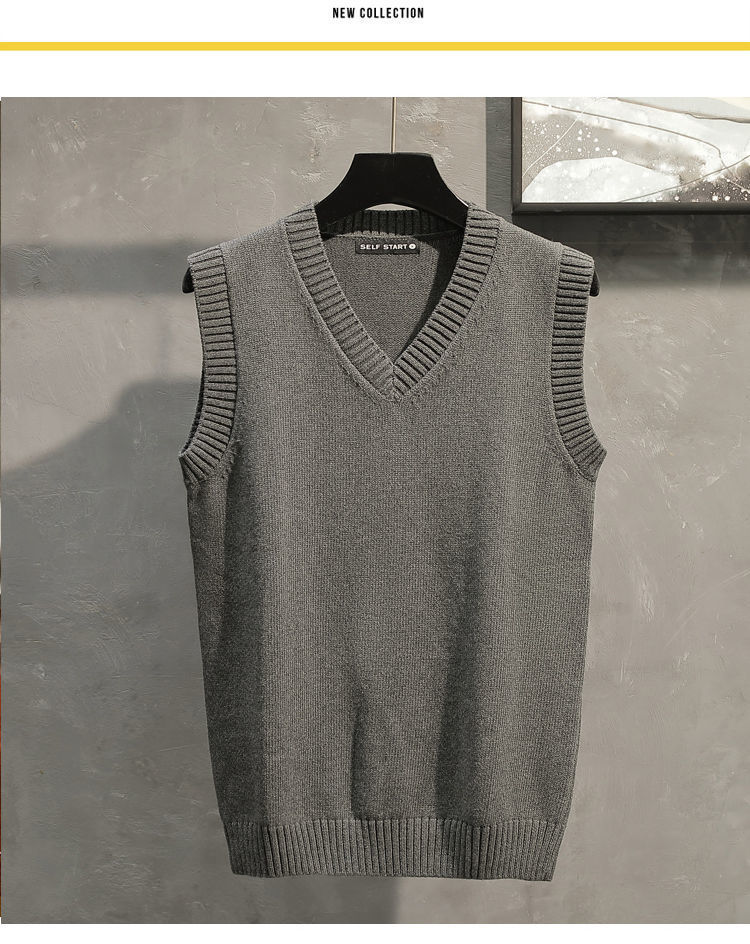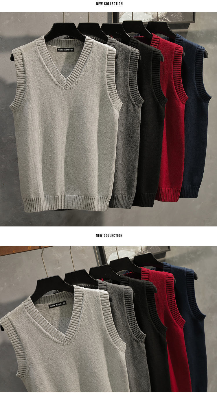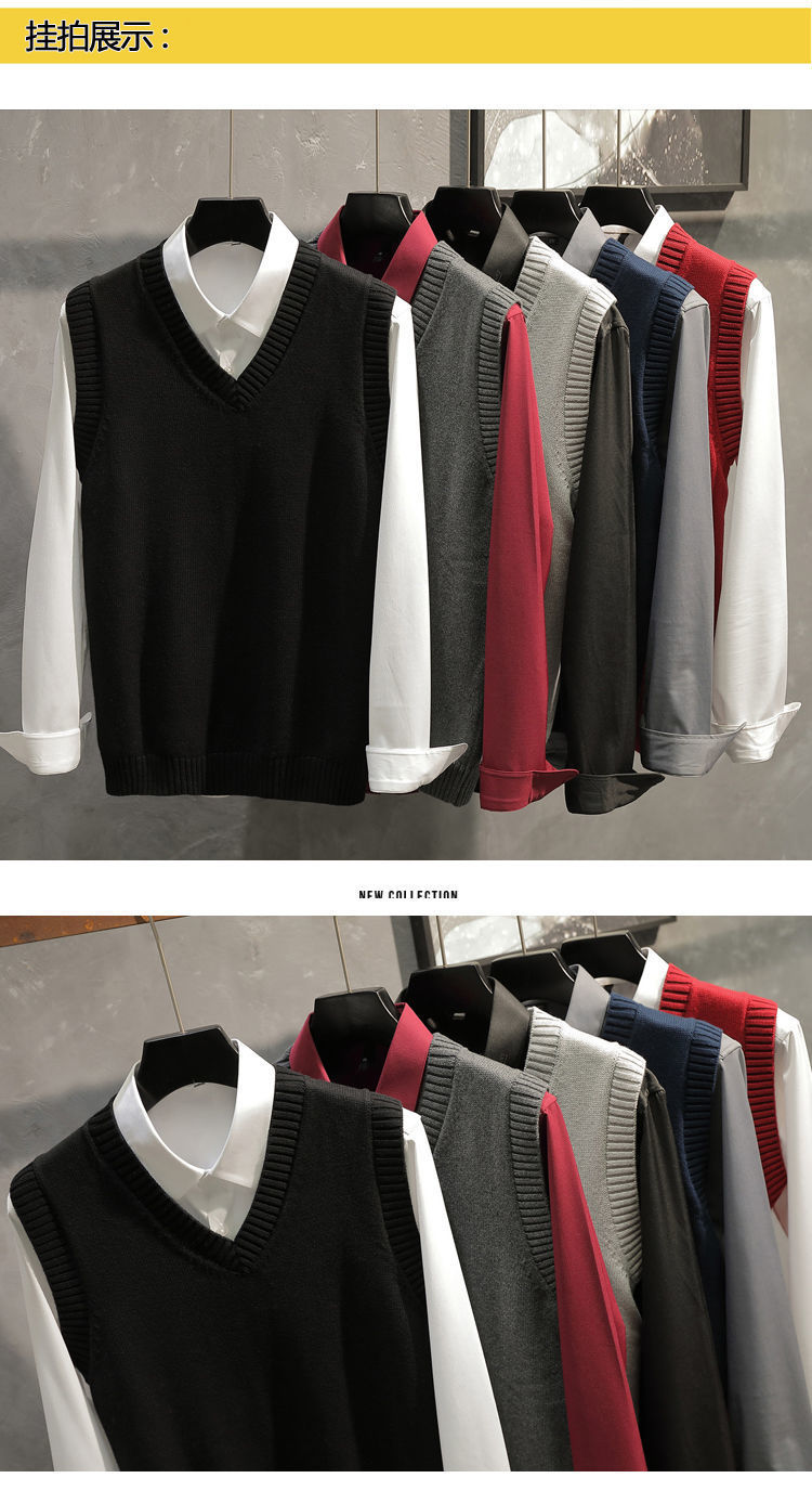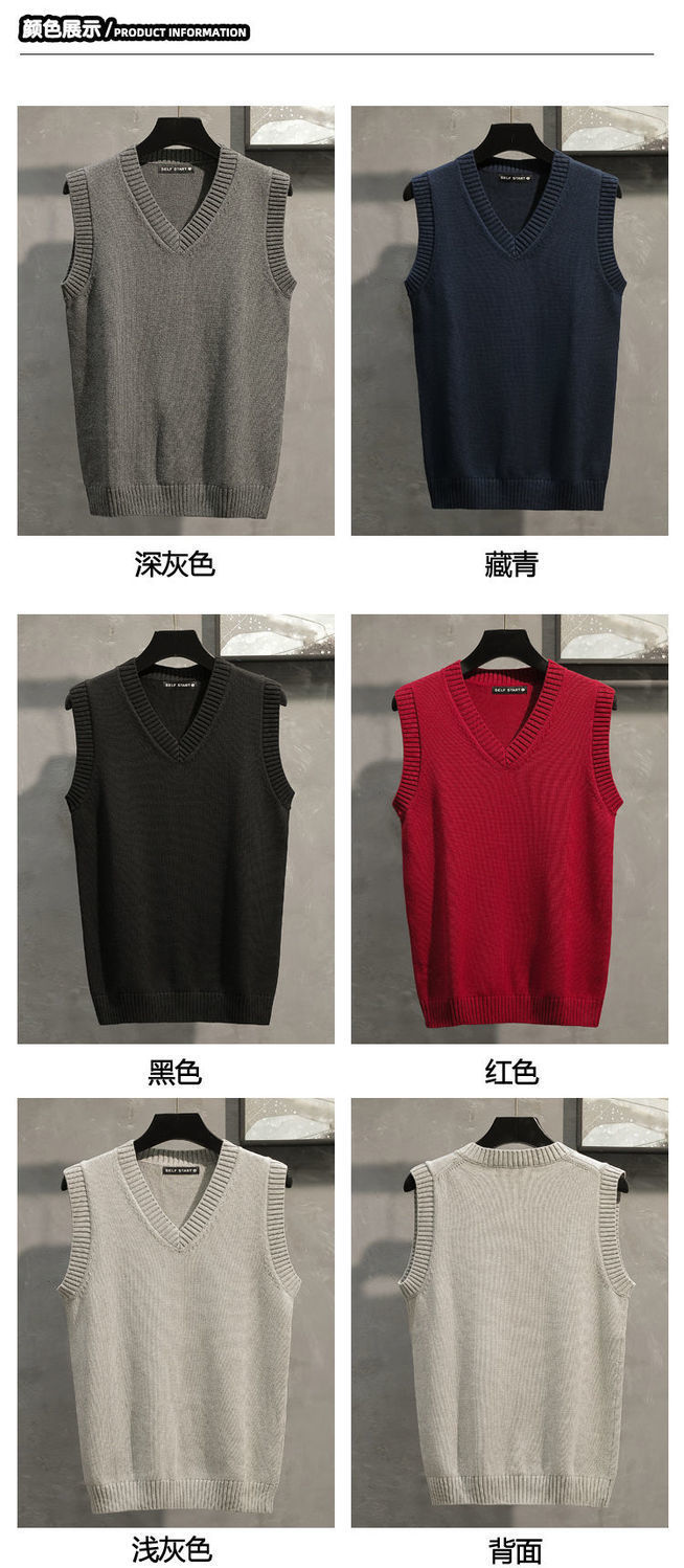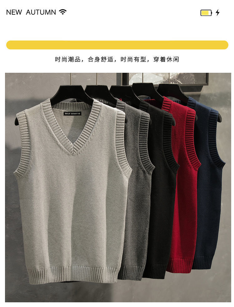 Vest dệt kim áo len nam cổ chữ V xu hướng thu đông áo len nam không tay lót giản dị phù hợp với áo vest