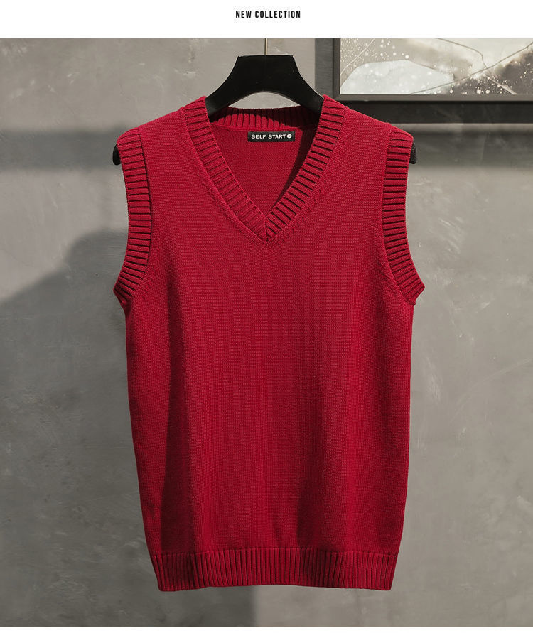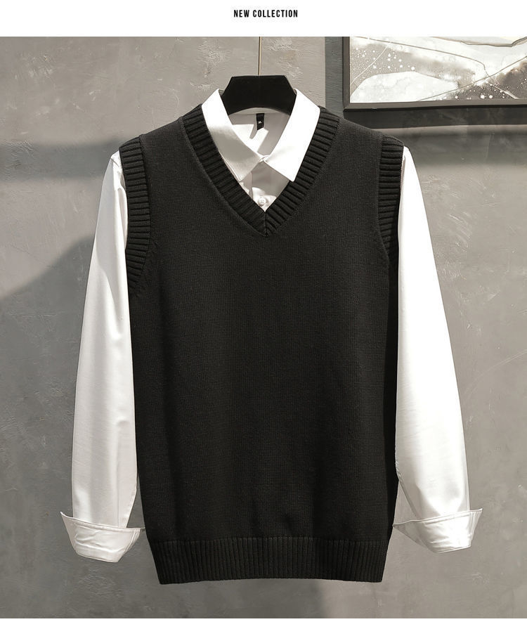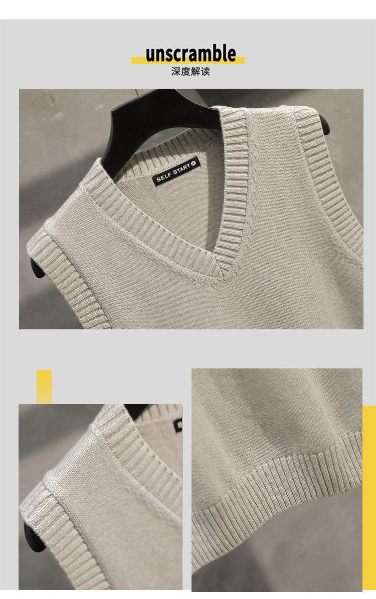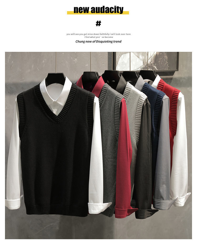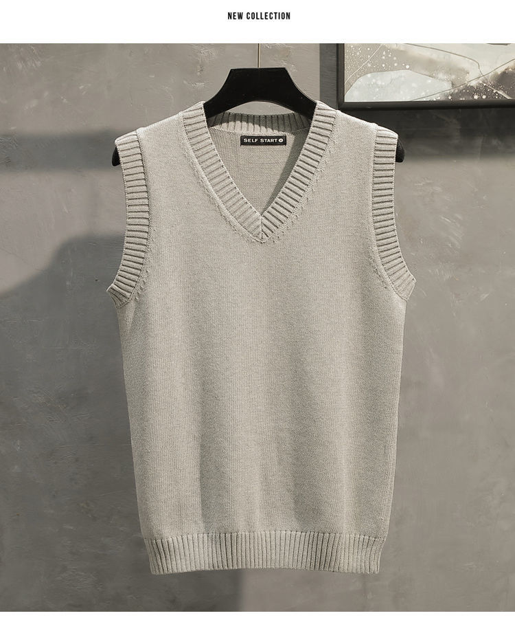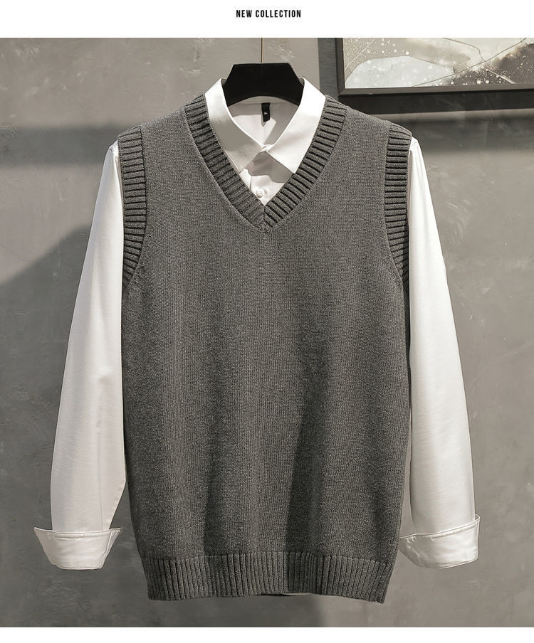 Vest dệt kim áo len nam cổ chữ V xu hướng thu đông áo len nam không tay lót giản dị phù hợp với áo vest