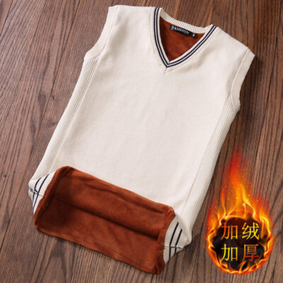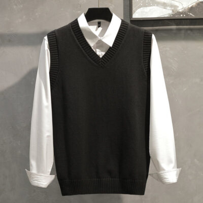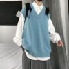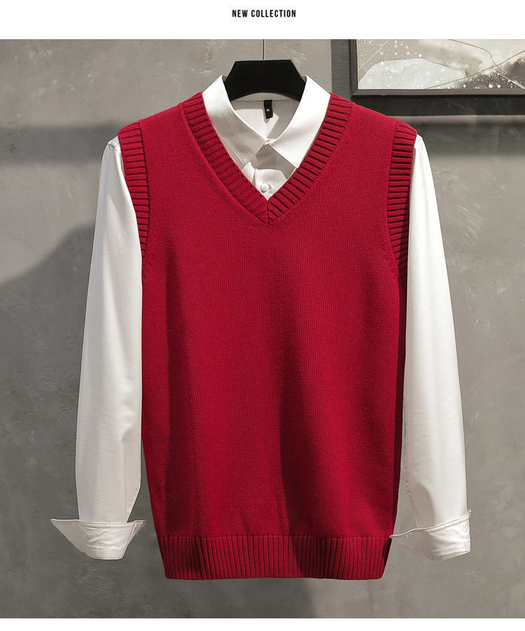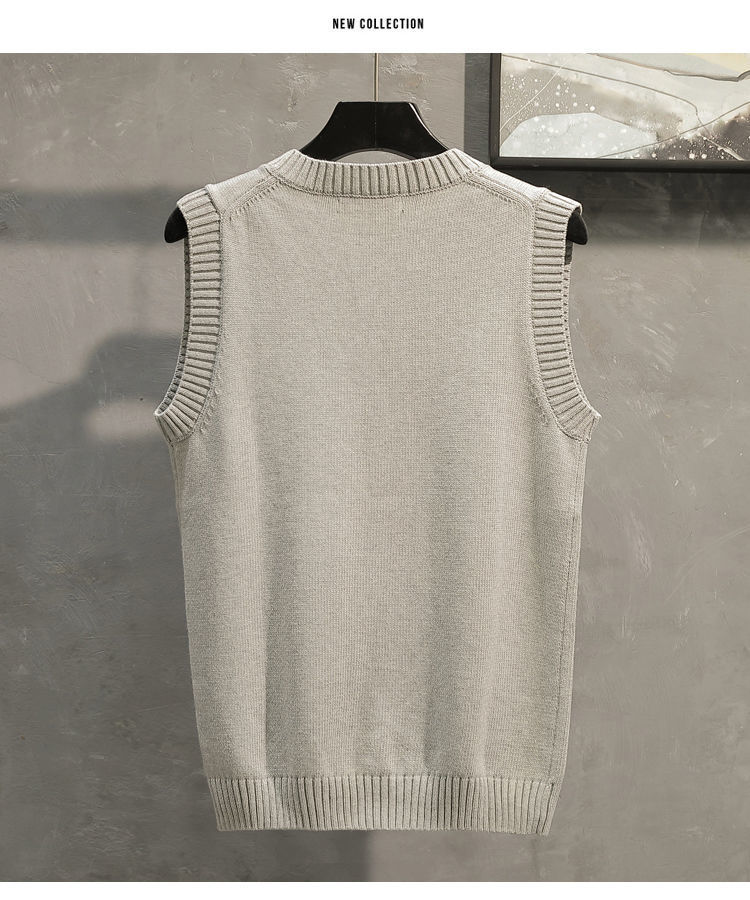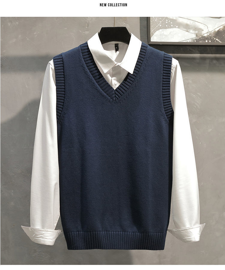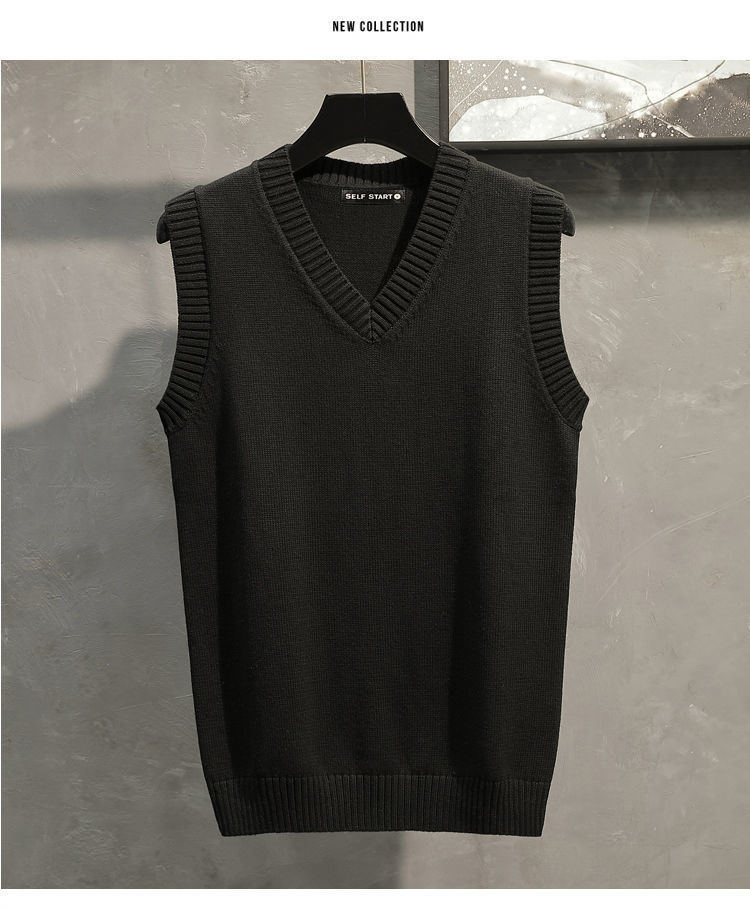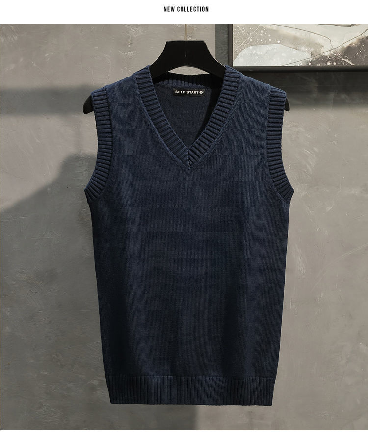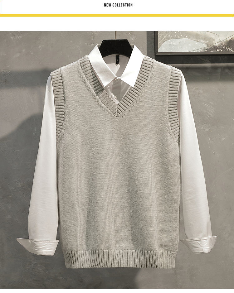 Vest dệt kim áo len nam cổ chữ V xu hướng thu đông áo len nam không tay lót giản dị phù hợp với áo vest
