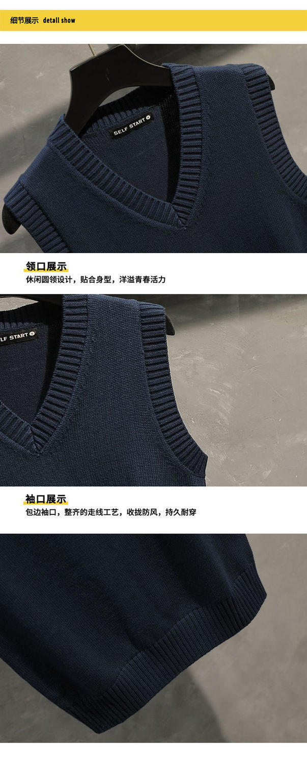 Vest dệt kim áo len nam cổ chữ V xu hướng thu đông áo len nam không tay lót giản dị phù hợp với áo vest