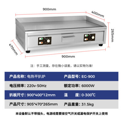 Thương hiệu: Fuzhengyuan Mã sản phẩm: EG-730/EG-900 Loại: Vỉ nướng Phạm vi sử dụng: Nhà hàng và quầy hàng khách sạn Đầu tư mạo hiểm Tinh thần kinh doanh: Doanh nhân/Doanh nghiệp nhỏ/Đầu tư nhỏ/Khởi nghiệp đầu tư/Khởi nghiệp đầu tư Dịch vụ hậu mãi: Bảo hành một năm Vỉ nướng chất liệu: gang Đối tượng áp dụng: Phạm vi nhiệt độ thực phẩm: 0-300 độ Thông số kỹ thuật: Vỉ nướng điện EG-730/vỉ nướng điện EG-900/vỉ nướng điện EG-900 Kiểu dáng: Vỉ nướng điện Teppanyaki