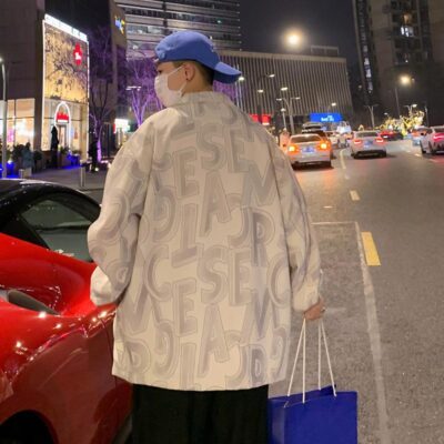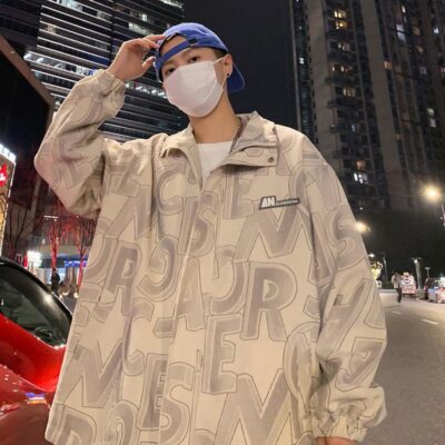Vibe National hợp thời trang chữ in đầy đủ áo khoác nhung nam mùa xuân và mùa thu thương hiệu hợp thời trang áo khoác ulzzang hợp thời trang tất cả các trận đấu