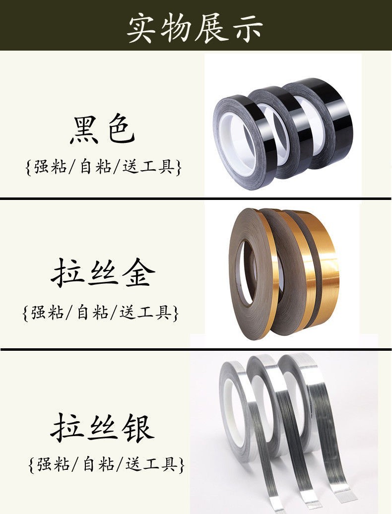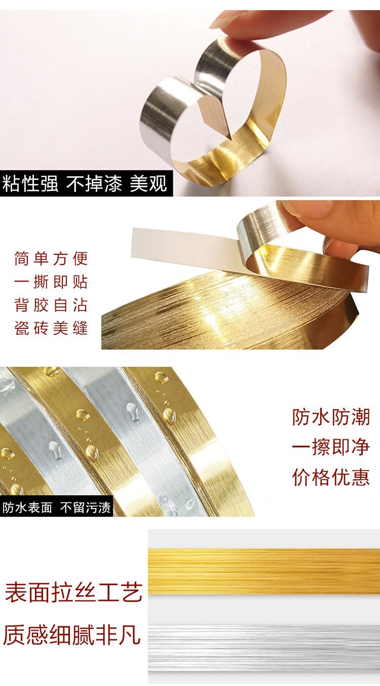 Viền vàng dải tự dính kim loại trang trí tự dính sàn dán tường gạch phòng khách nền tường tủ quần áo vàng dòng sticker