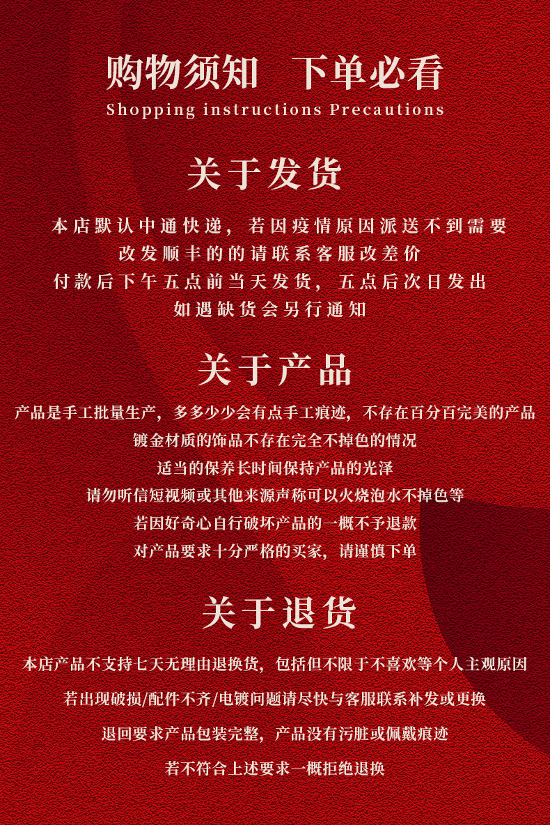 1.单独存放饰品勿与其它饰品或硬物混放,避免磨花表层;