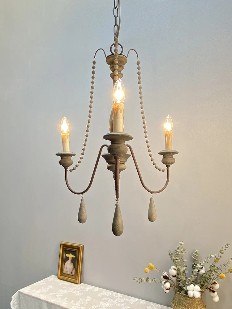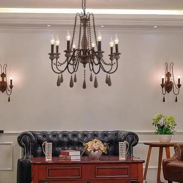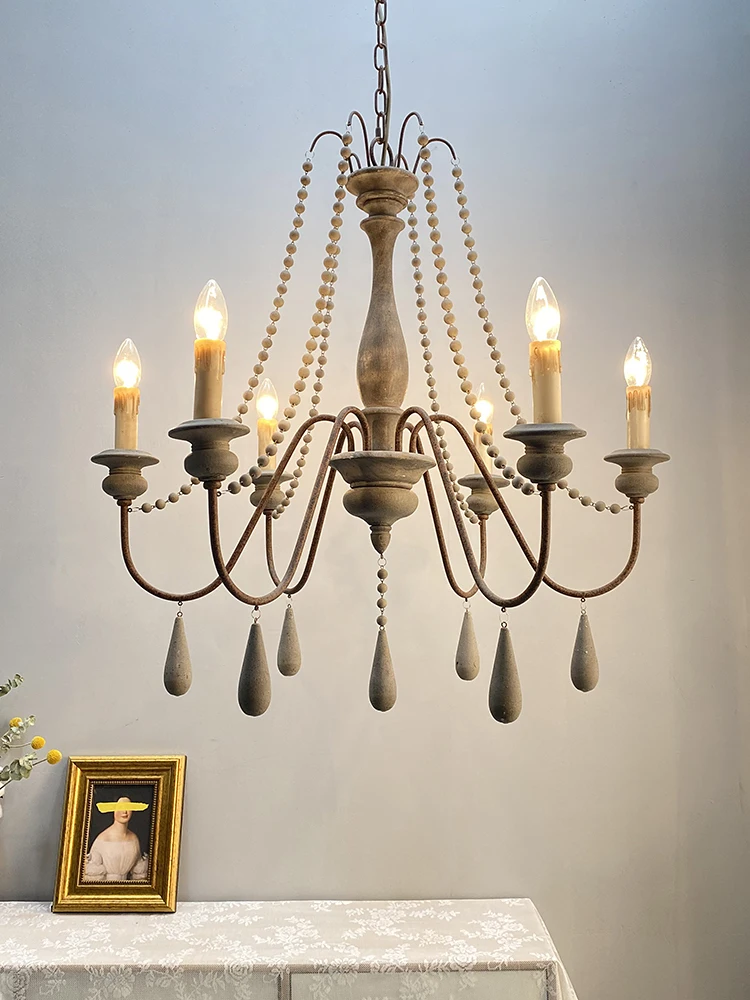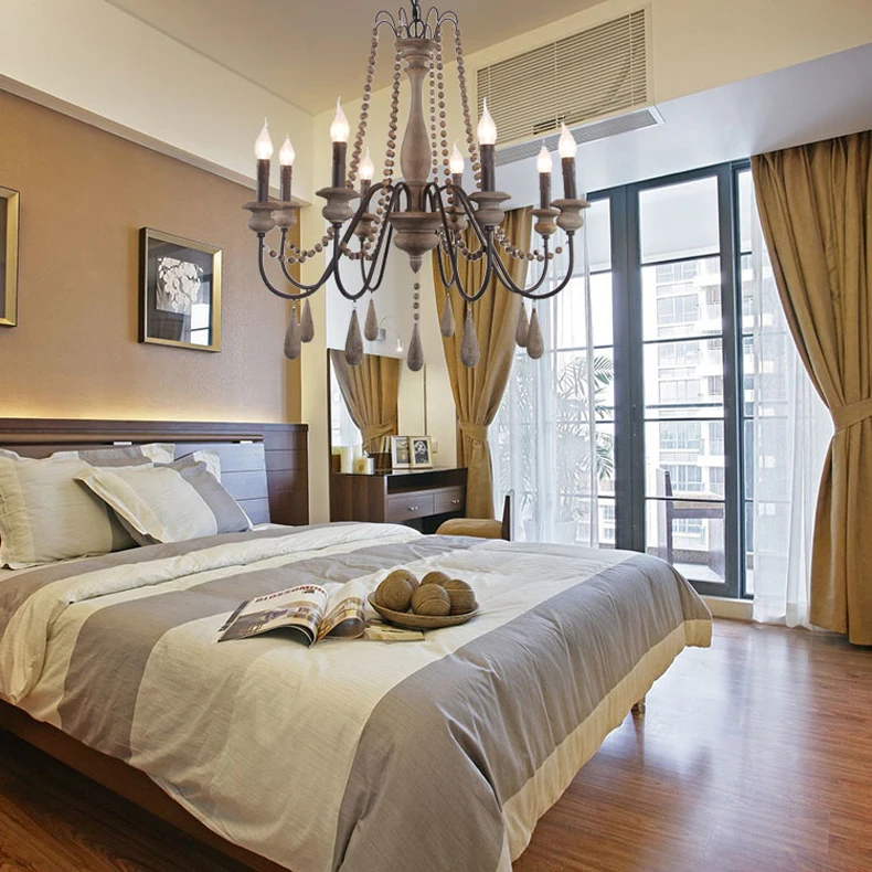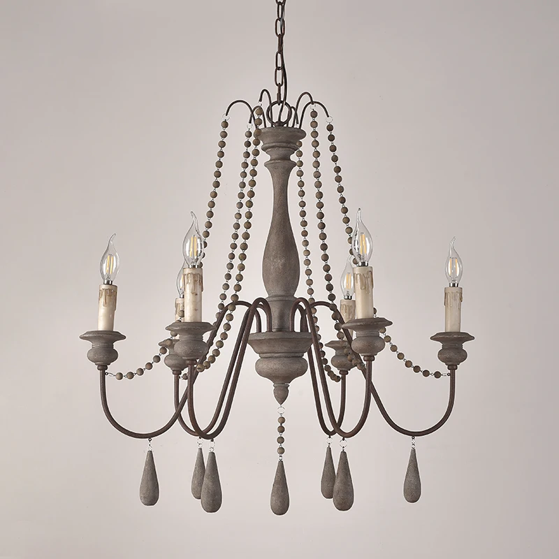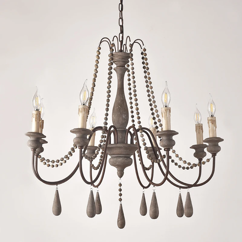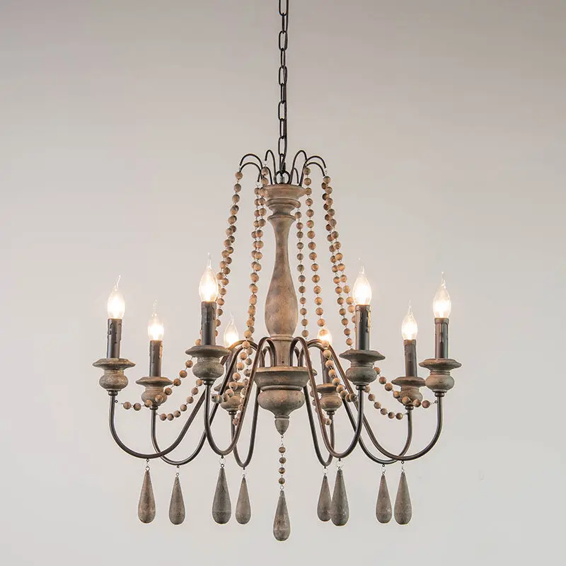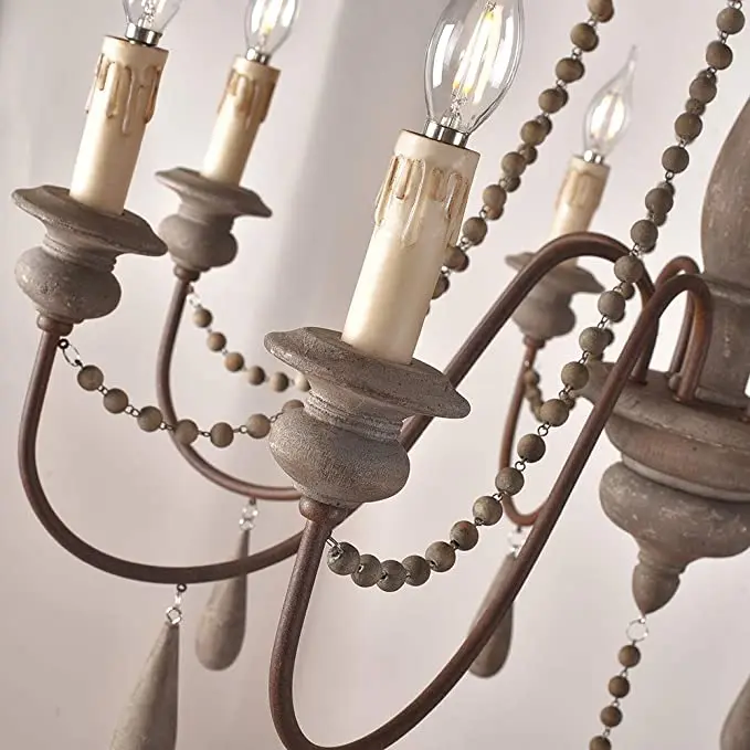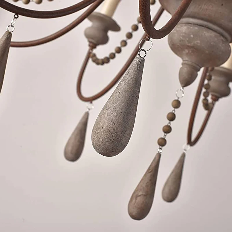 Wood Bead Vintage Chandeliers Rustic Wooden Chandelier Indoor Lighting for Living Room Bedroom Kitchen Loft Lights Fixture Lamp