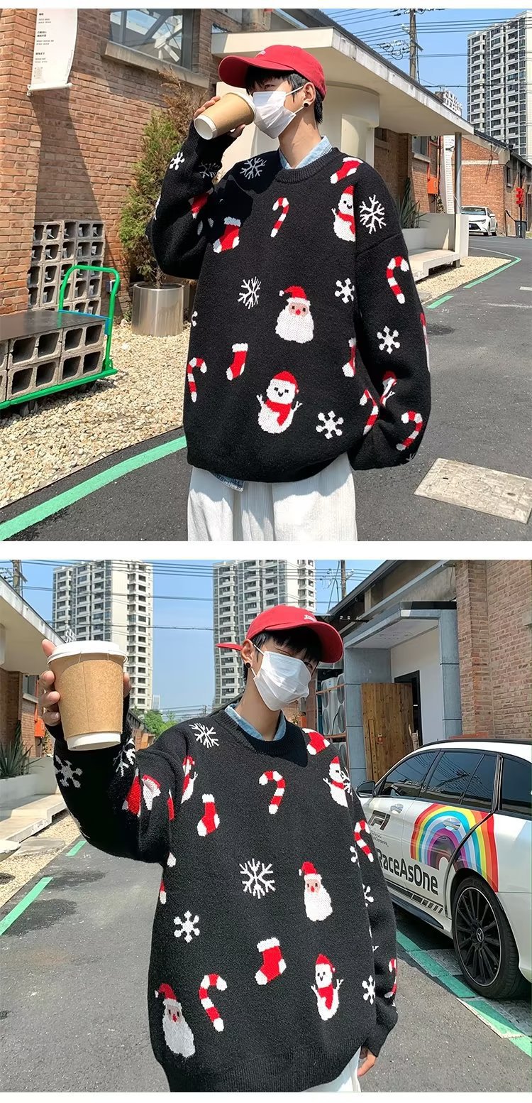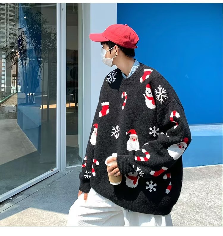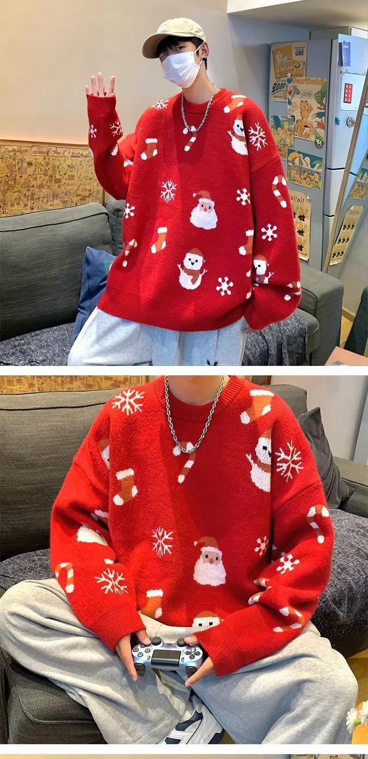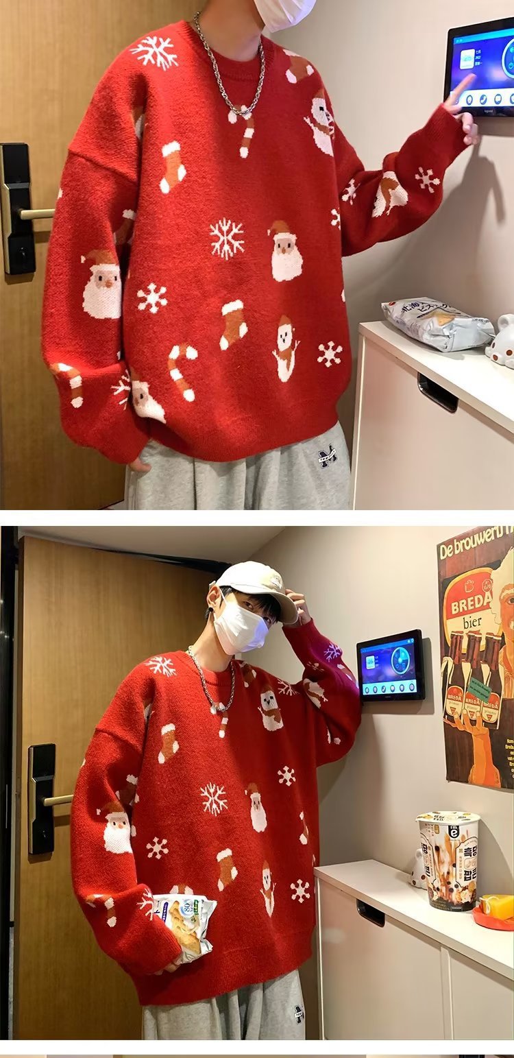 Vintage Ông Già Noel Áo Len Nam Hàn Quốc Rời Dệt Kim Áo Khoác Mùa Thu Đa Năng Cặp Đôi Mặc Cổ Cao Cấp