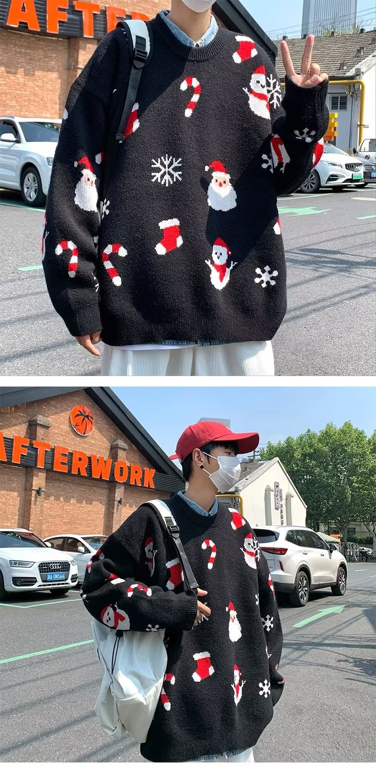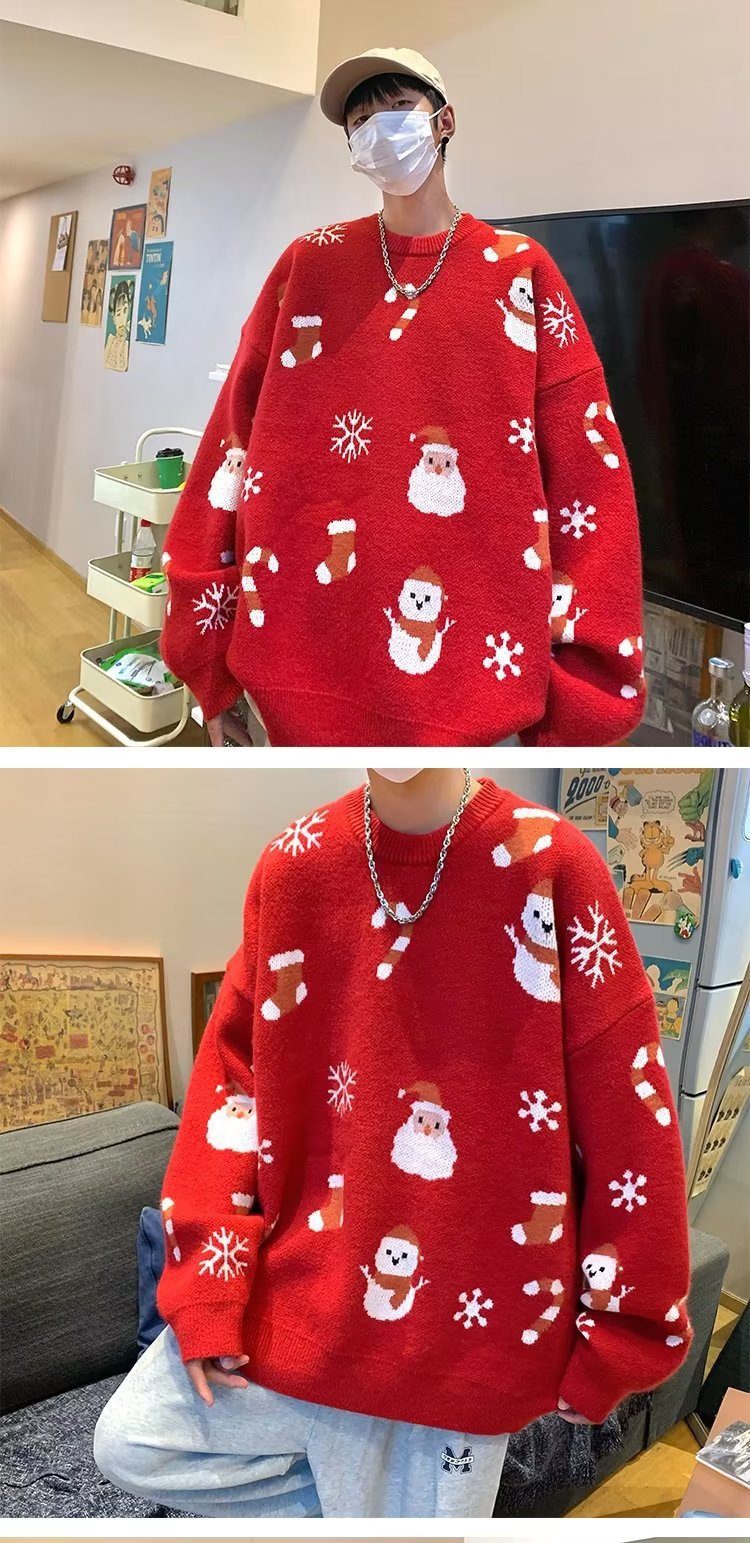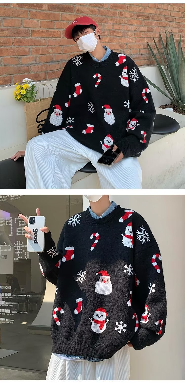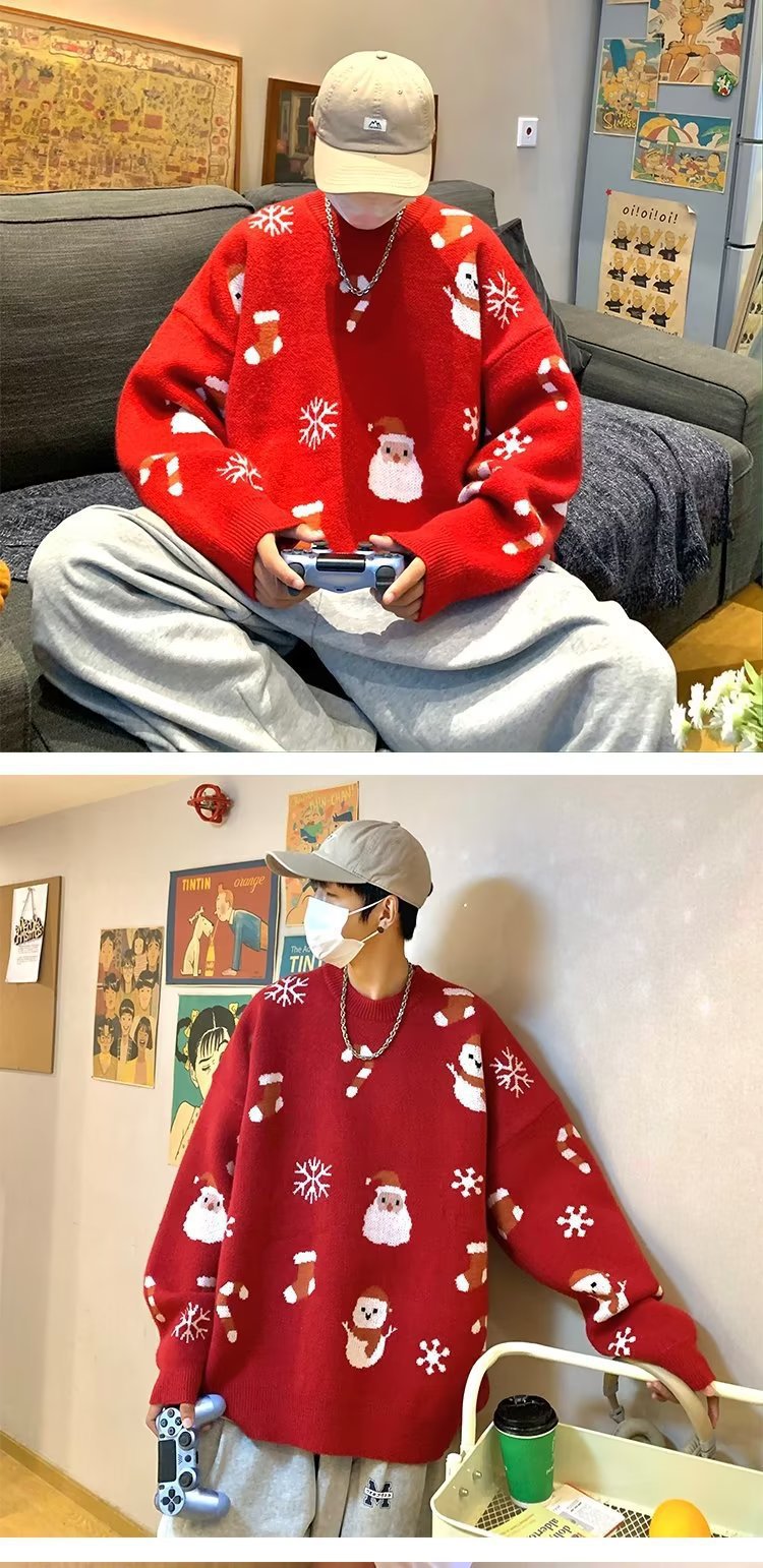 Vintage Ông Già Noel Áo Len Nam Hàn Quốc Rời Dệt Kim Áo Khoác Mùa Thu Đa Năng Cặp Đôi Mặc Cổ Cao Cấp