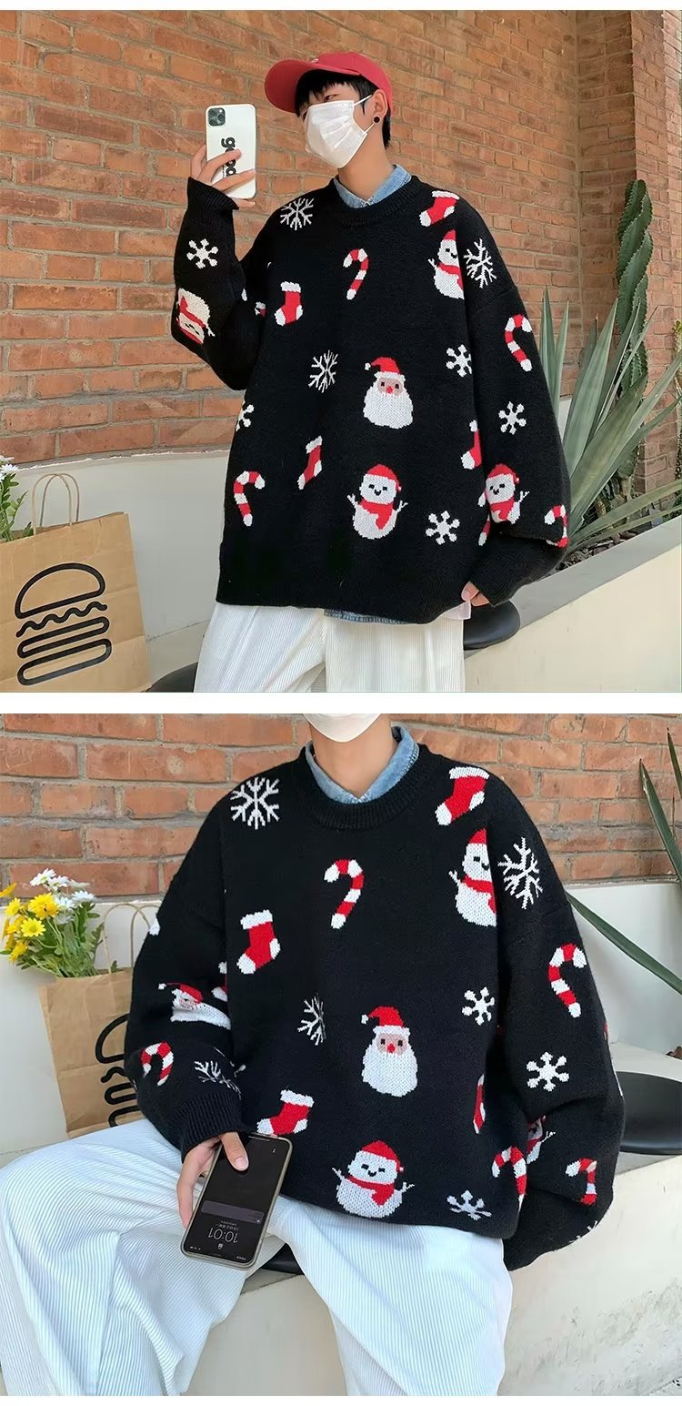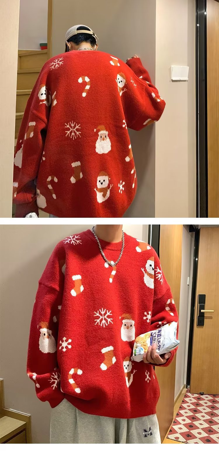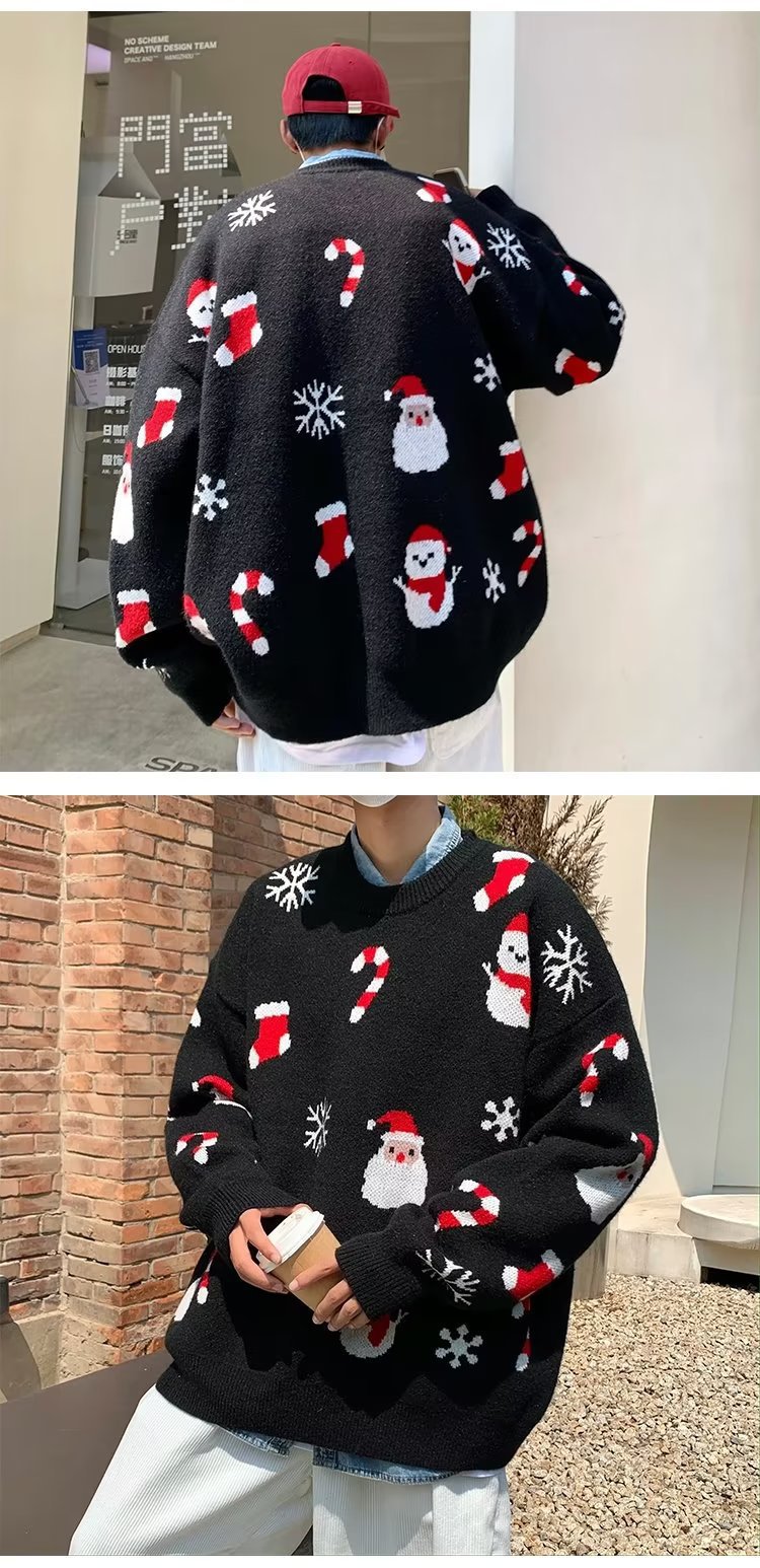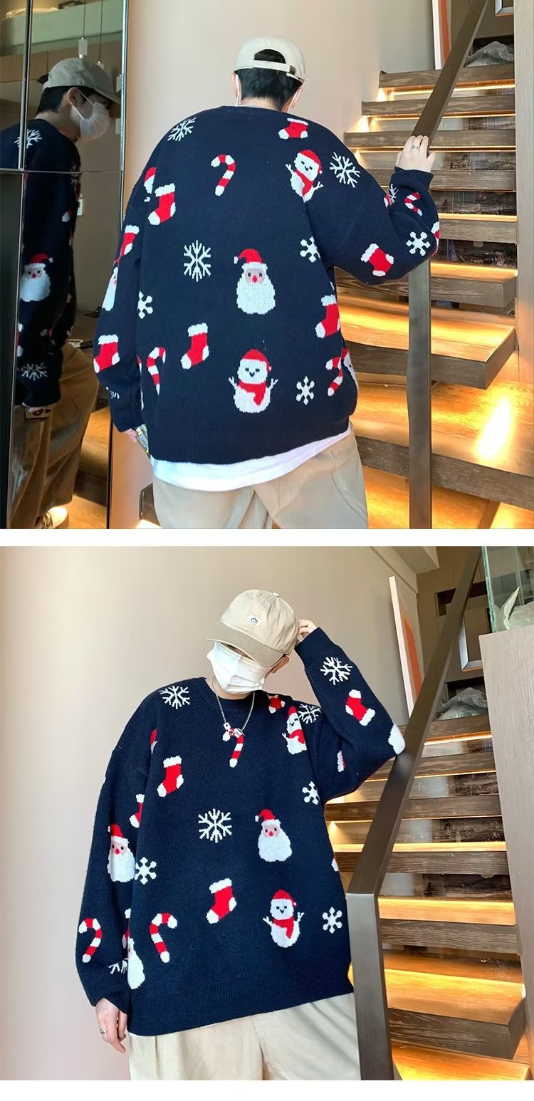 Vintage Ông Già Noel Áo Len Nam Hàn Quốc Rời Dệt Kim Áo Khoác Mùa Thu Đa Năng Cặp Đôi Mặc Cổ Cao Cấp
