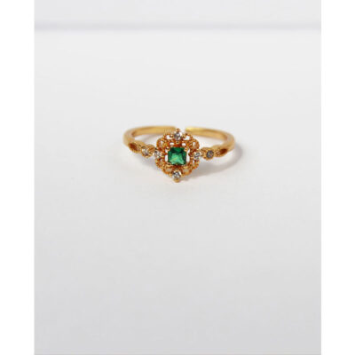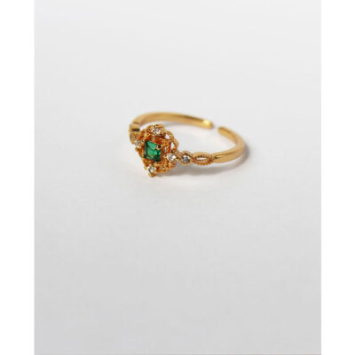 Vintage Thời Trung Cổ Cung Đình Phong Cách Ngọc Lục Bảo Khảm Đá Zircon Nhẫn Đồng Mạ Vàng Thật Chỉ Số Nhẫn Nữ 161