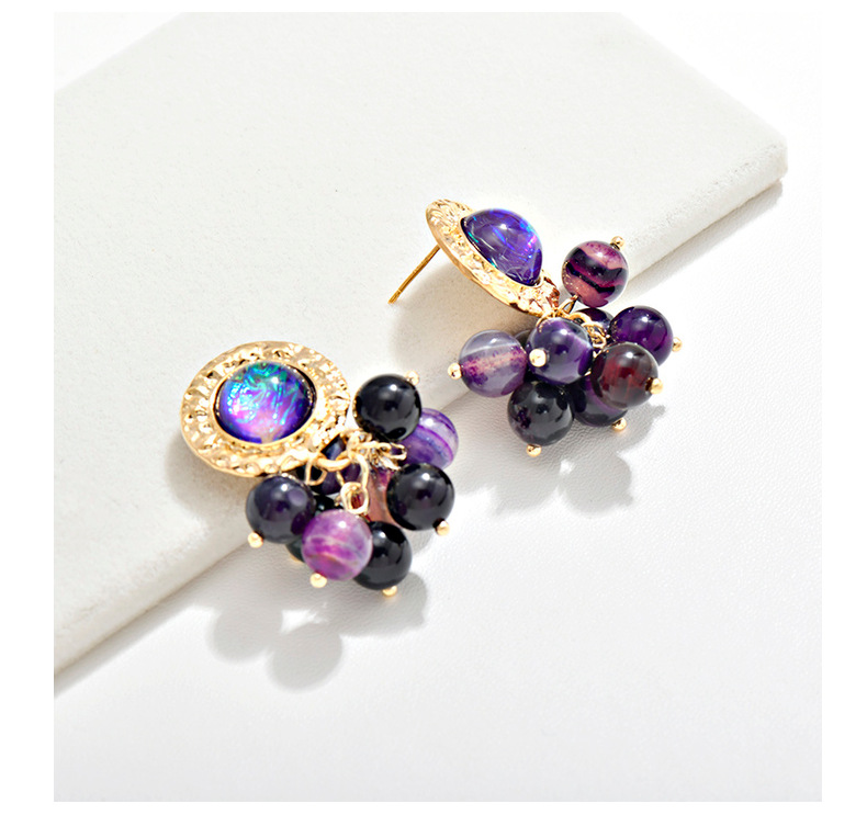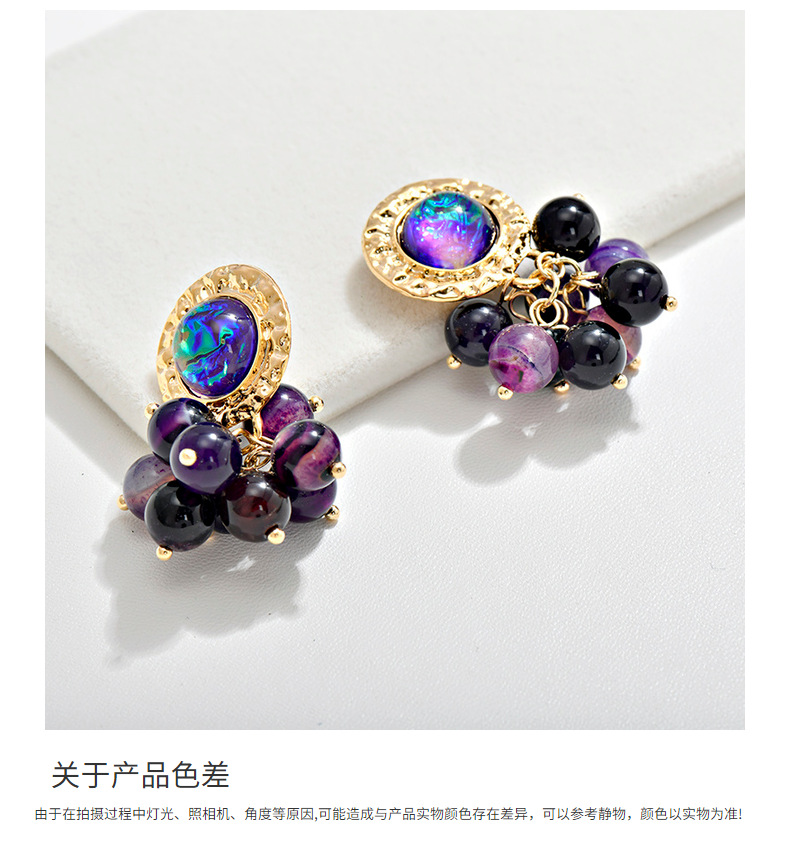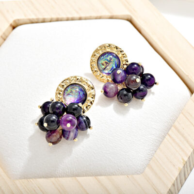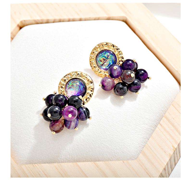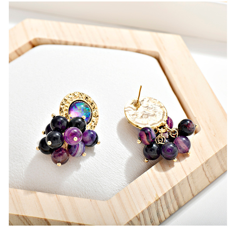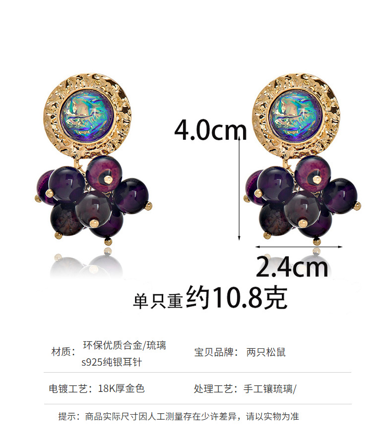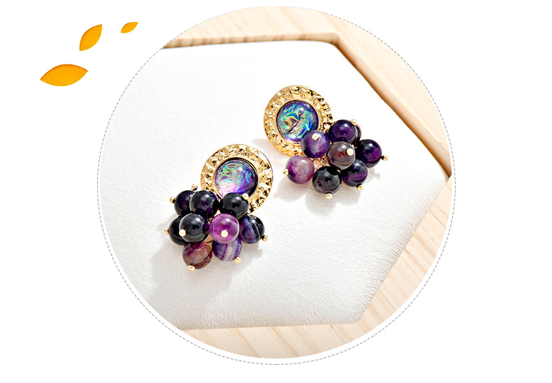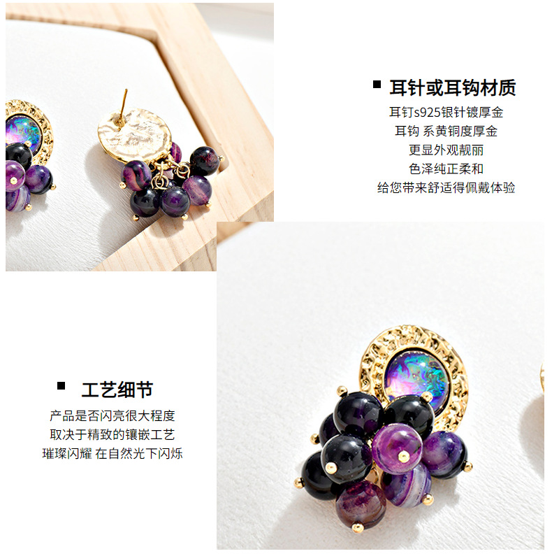 Vintage trung niên s925 kim bạc Shoushan bông tai nho bông tai pha lê thạch anh tím tự nhiên chất lượng cao