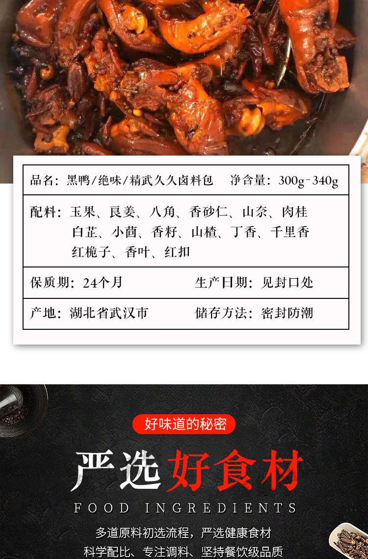 Vịt đen Vũ Hán Gói gia vị Gia vị cổ vịt cay Gói gia vị Jiujiu Vịt om thịt lợn kho rau gia vị Gói gia vị