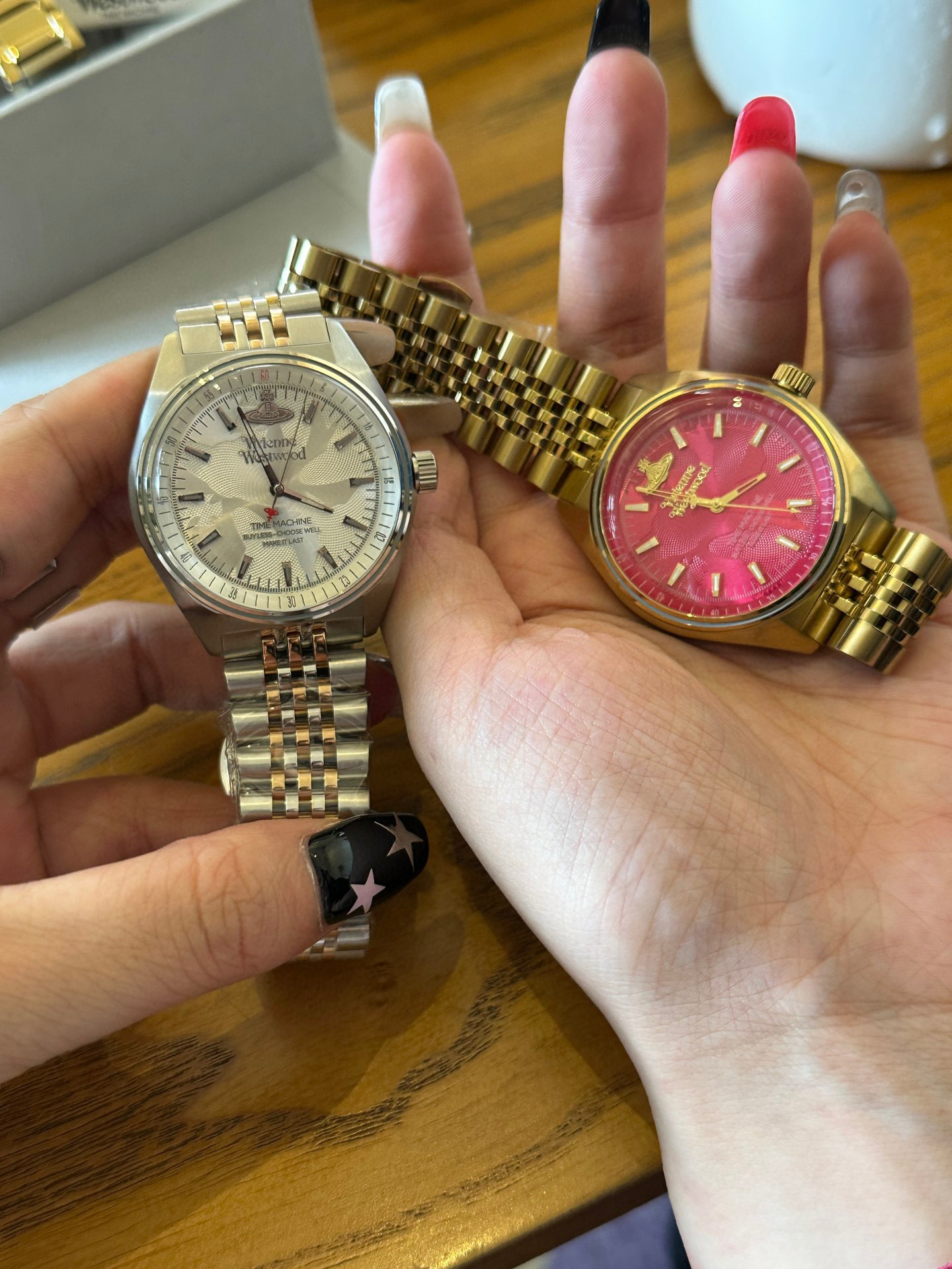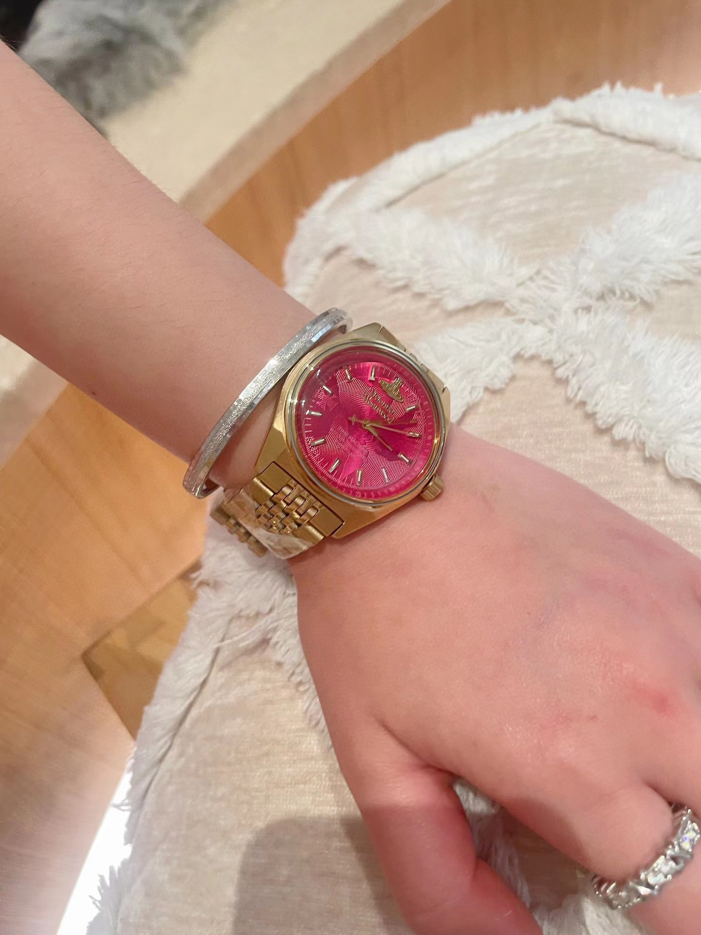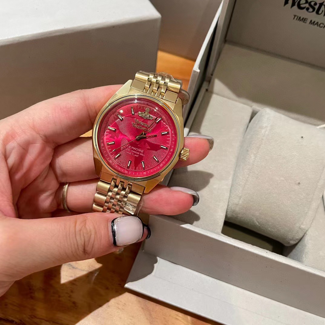 Vivienne Rose Pink Mint Green Queen Mother Rose Red Watch Saturn Quartz Steel Band Đồng hồ đeo tay nữ Đồng hồ vàng nhỏ Đồng hồ đeo tay nhỏ màu xanh