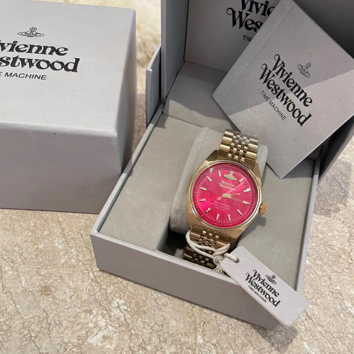 Vivienne Rose Pink Mint Green Queen Mother Rose Red Watch Saturn Quartz Steel Band Đồng hồ đeo tay nữ Đồng hồ vàng nhỏ Đồng hồ đeo tay nhỏ màu xanh