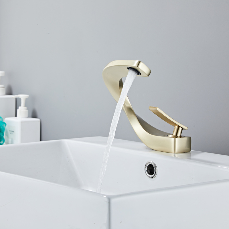 Vòi chậu rửa mặt nghệ thuật sóng 1 lỗ phòng tắm khách sạn vòi nước nóng lạnh mạ điện vòi phun sơn