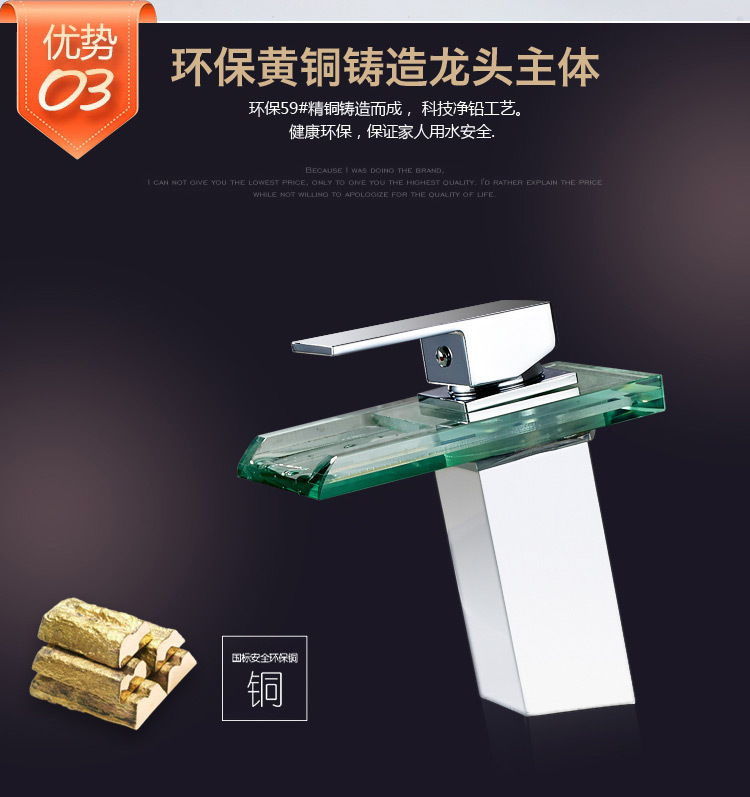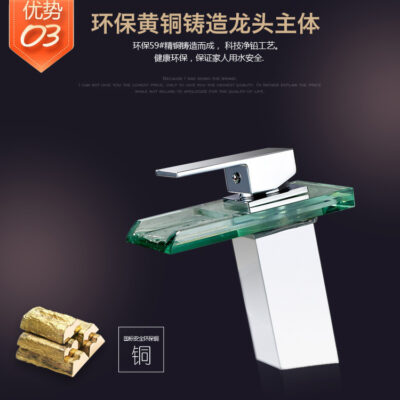 Vòi thủy tinh phát sáng LED ba màu được kiểm soát nhiệt độ Nhà sản xuất vòi nước nóng và lạnh lưu vực thác nước vuông