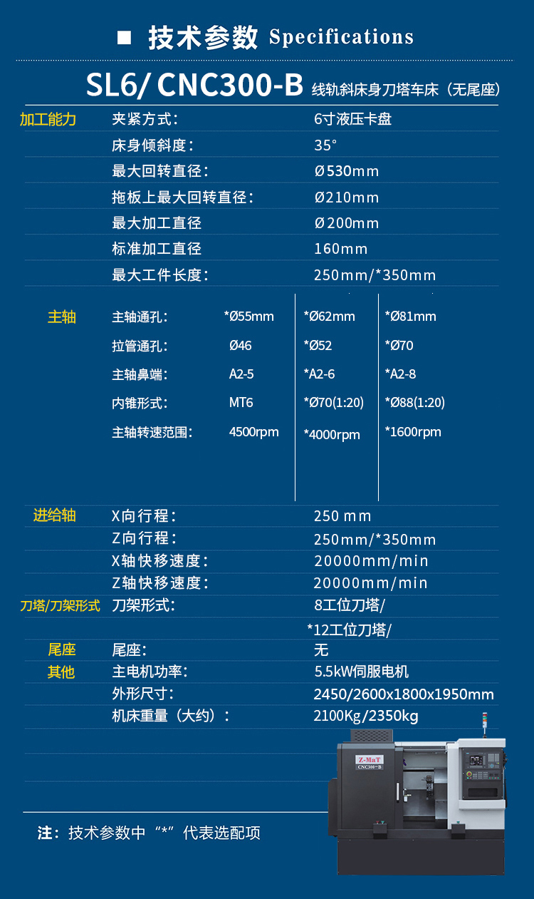 Vòng chống giật Z-MaT Máy tiện phay CNC Máy công cụ CNC300-B 6130STL8 đường ray 6832 tháp pháo giường nghiêng 450
