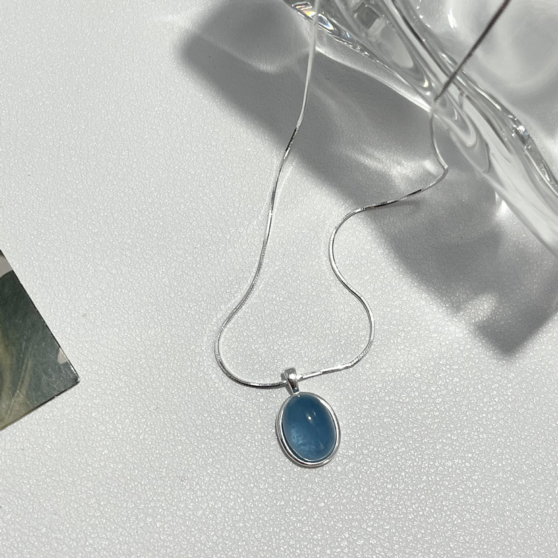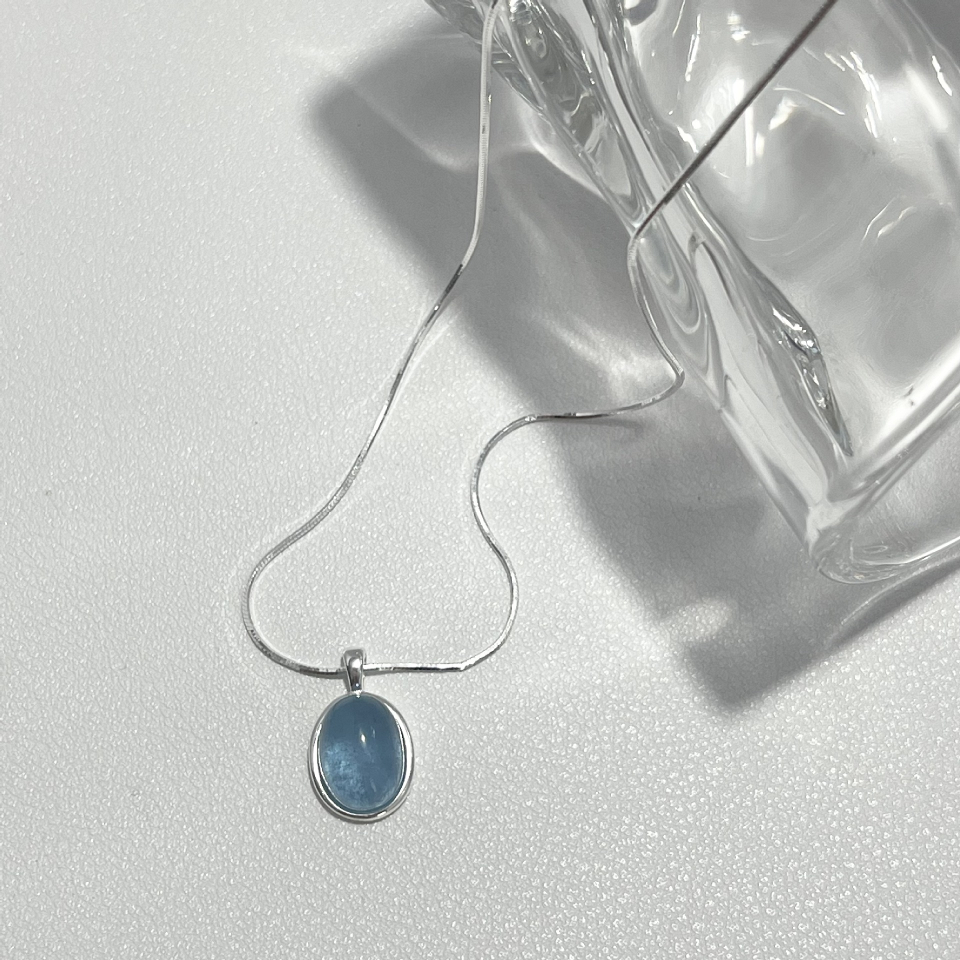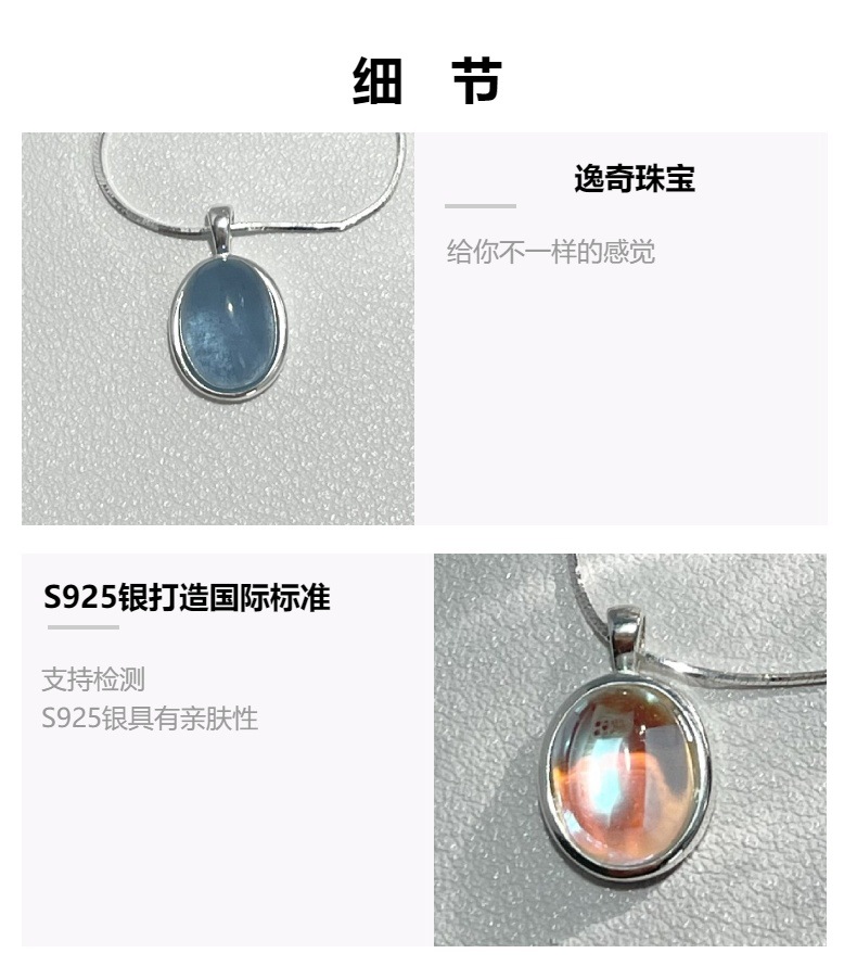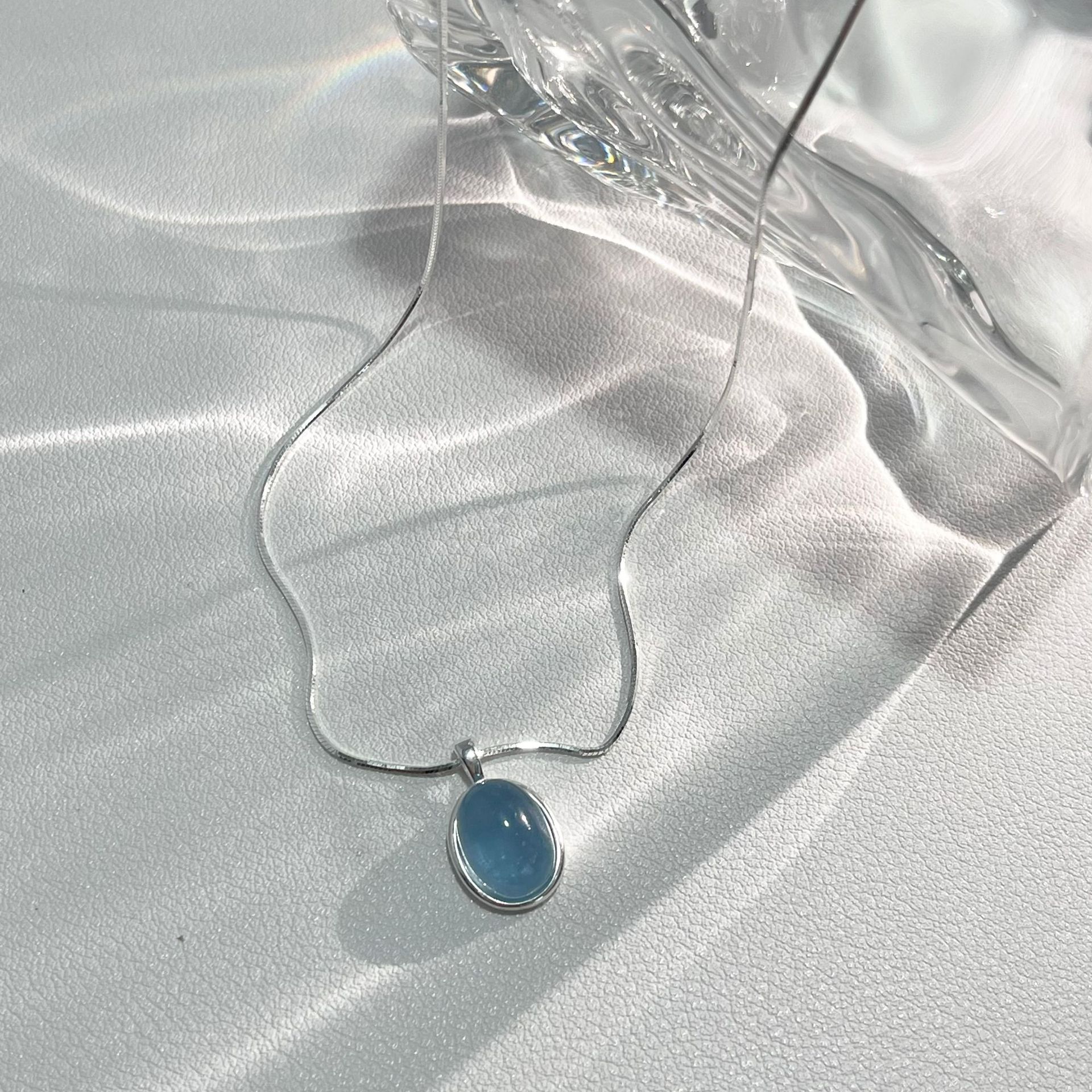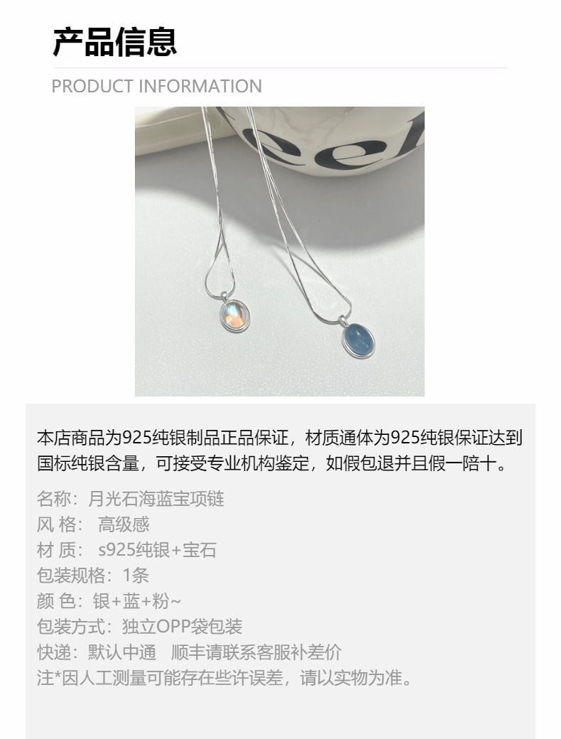 Vòng cổ bằng bạc 925 moonstone aquamarine vòng cổ cảm giác cao cấp của phụ nữ thích hợp chuỗi xương rắn chuỗi xương đòn chuỗi sản phẩm mới tất cả các trận đấu đồ trang sức