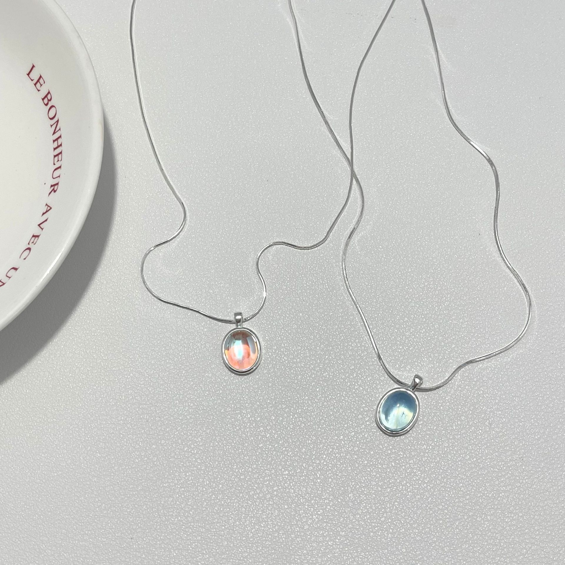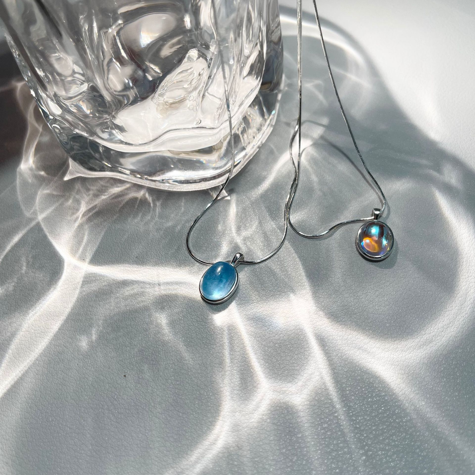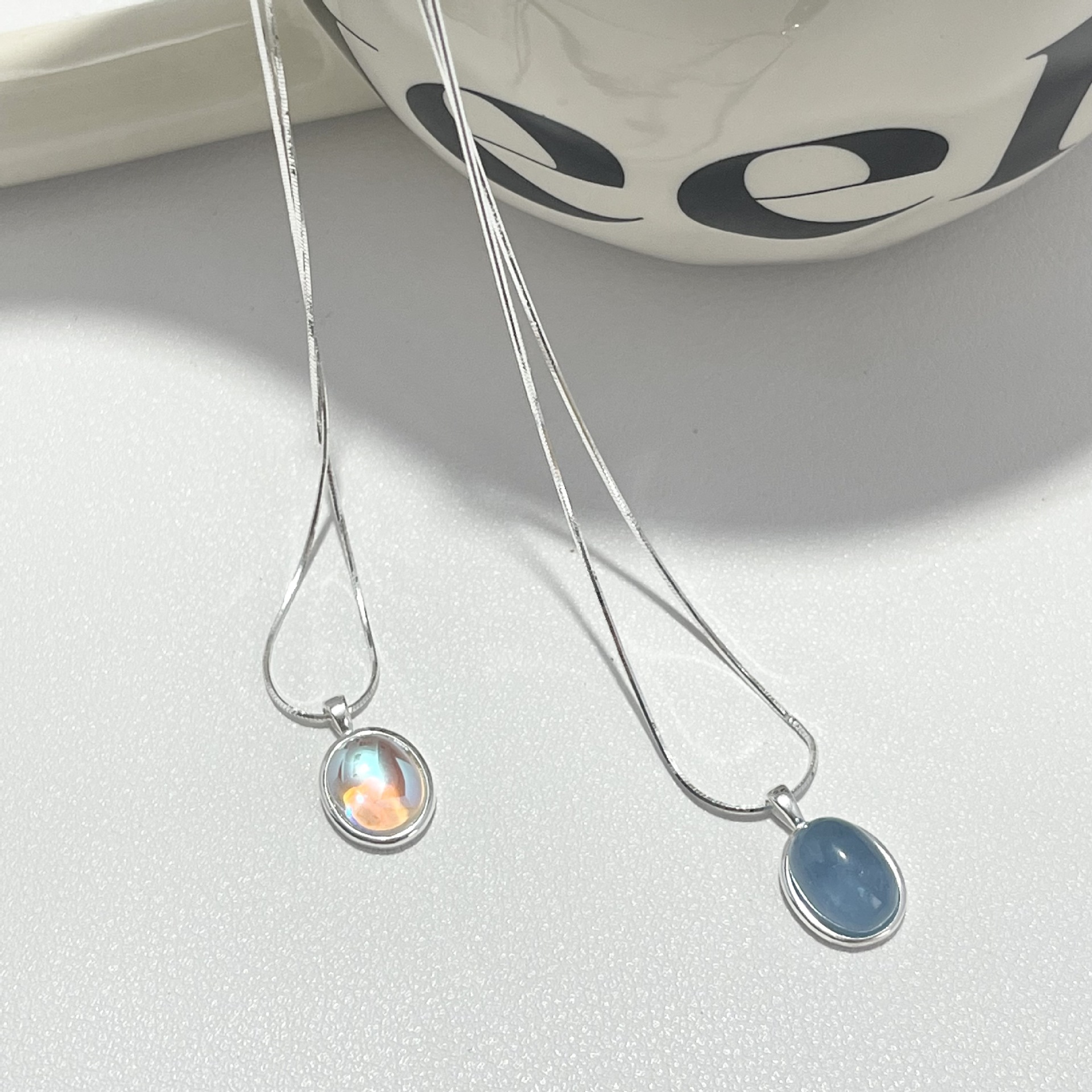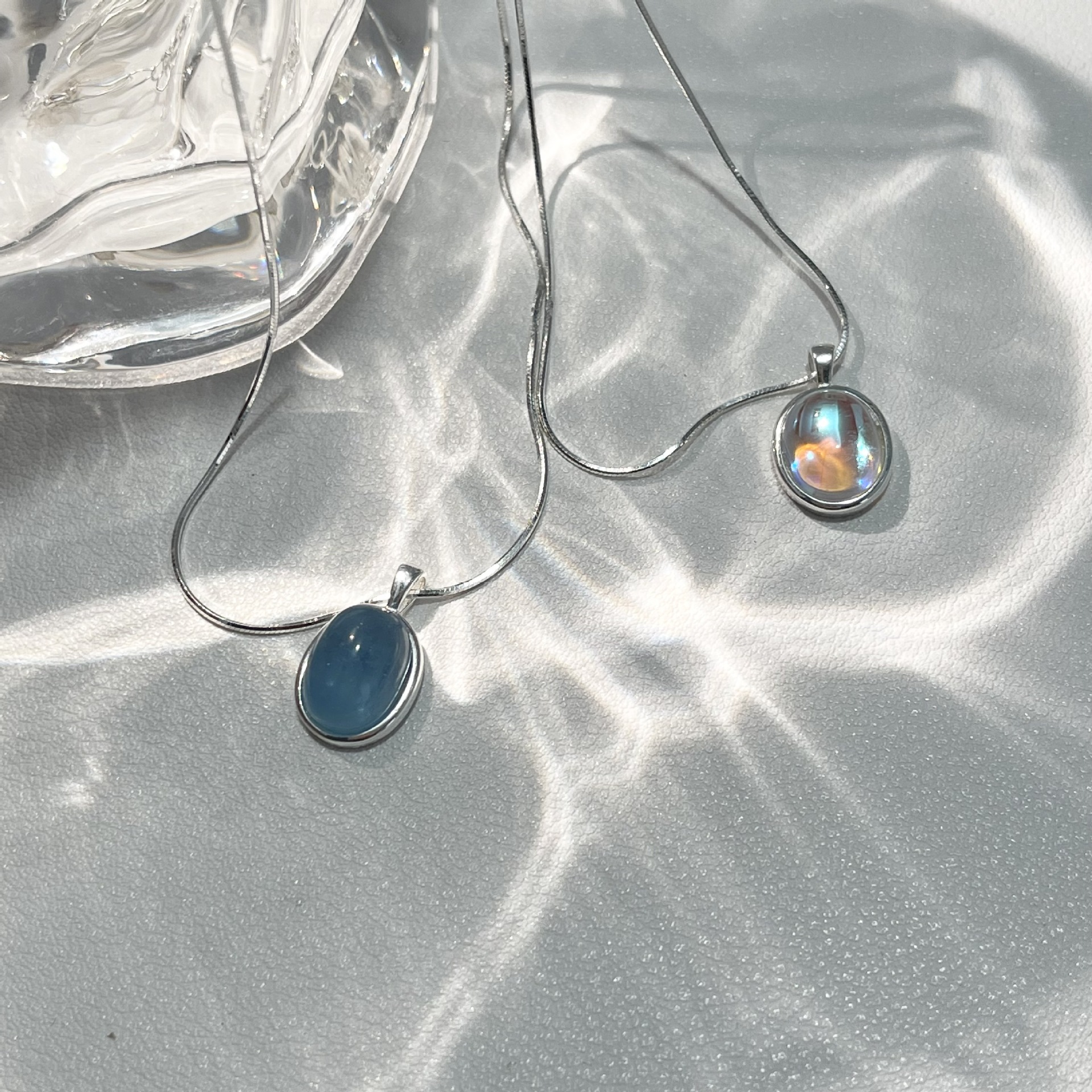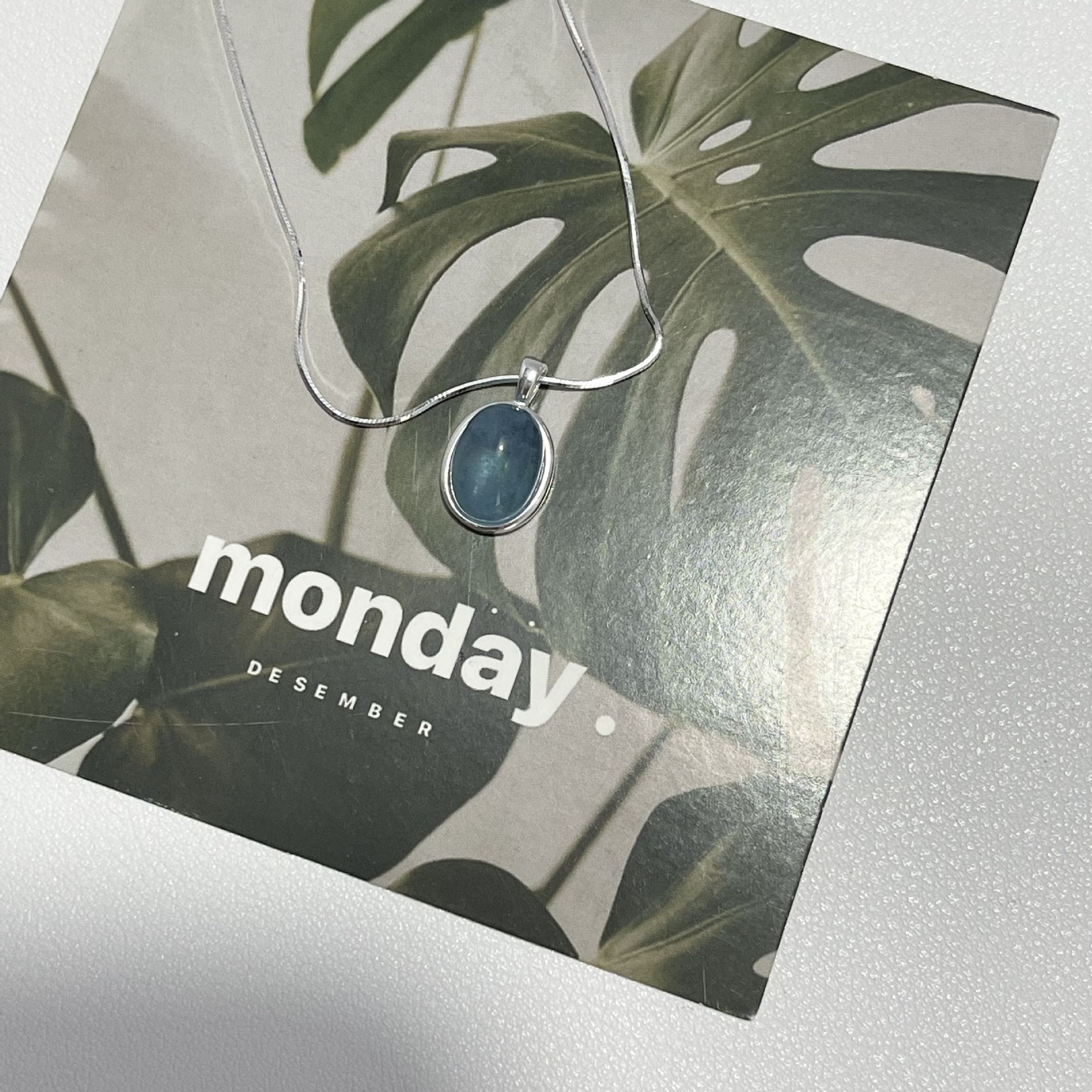 Vòng cổ bằng bạc 925 moonstone aquamarine vòng cổ cảm giác cao cấp của phụ nữ thích hợp chuỗi xương rắn chuỗi xương đòn chuỗi sản phẩm mới tất cả các trận đấu đồ trang sức