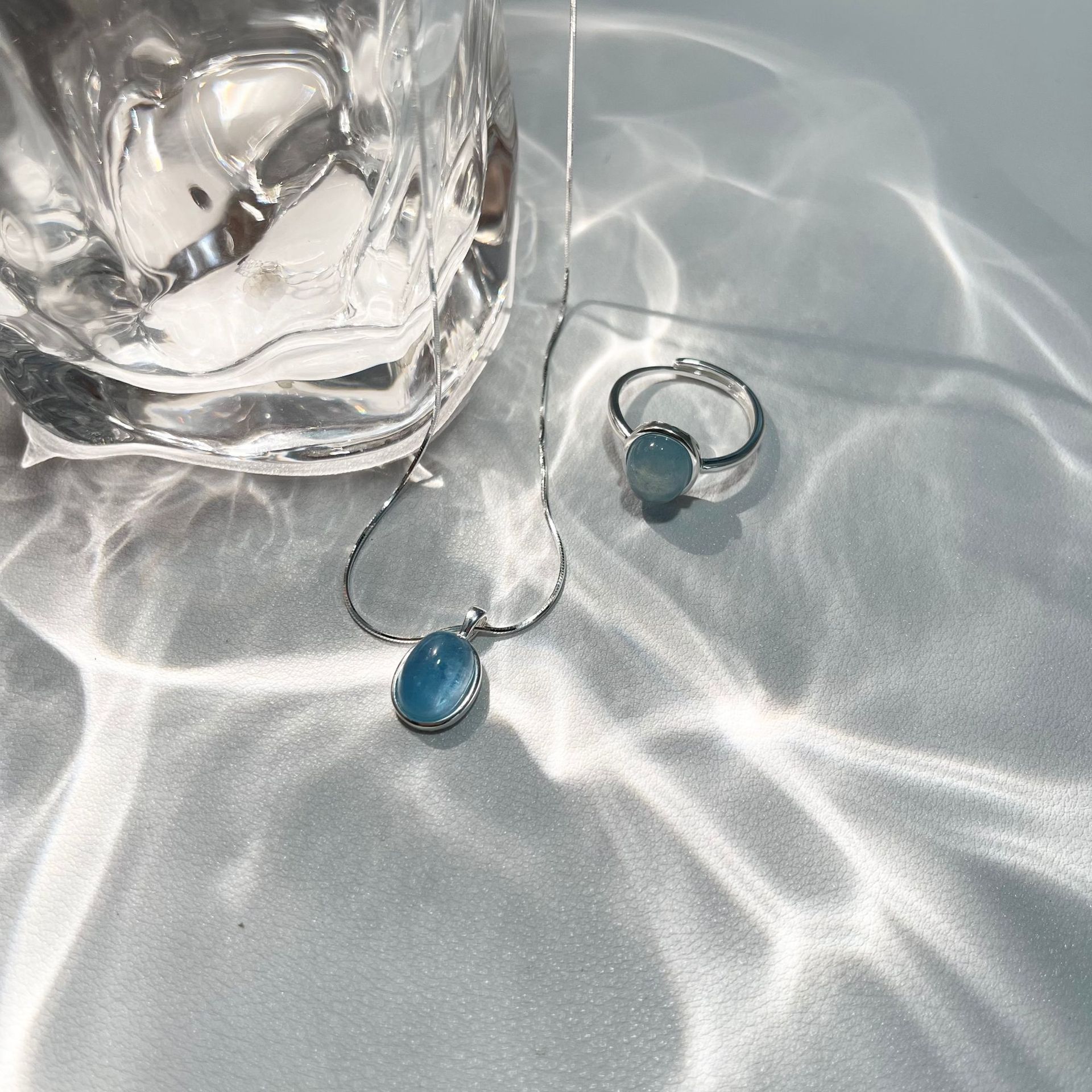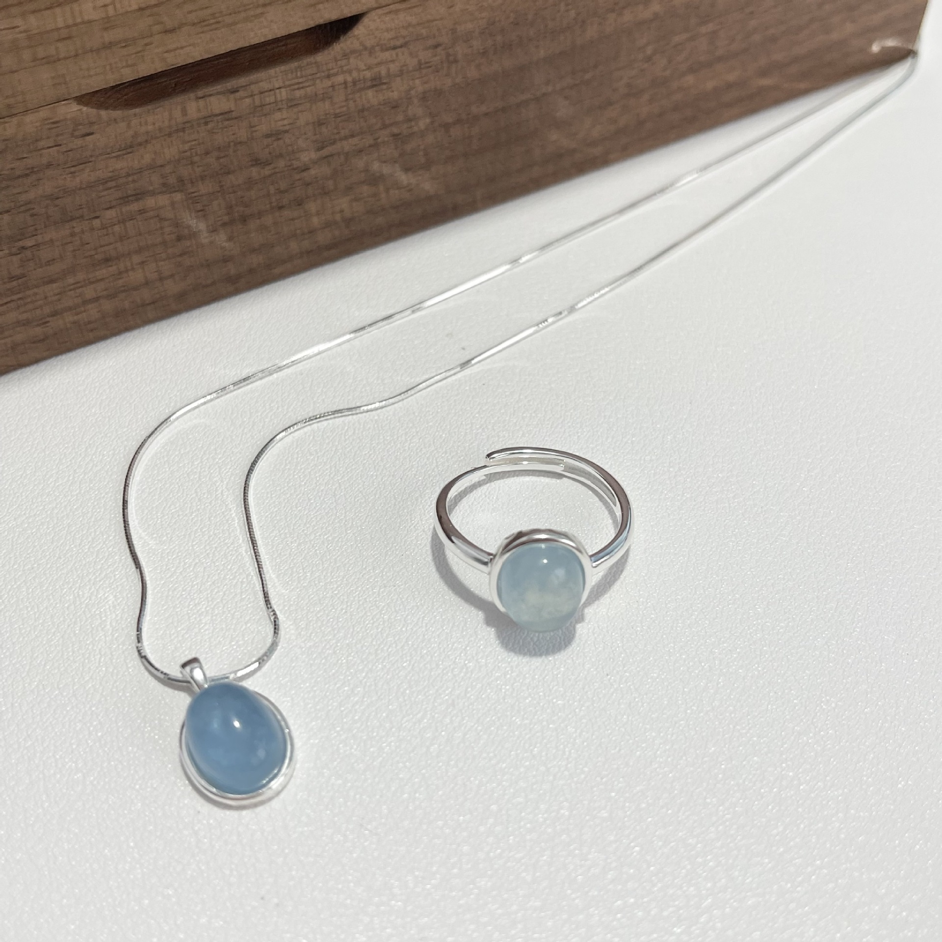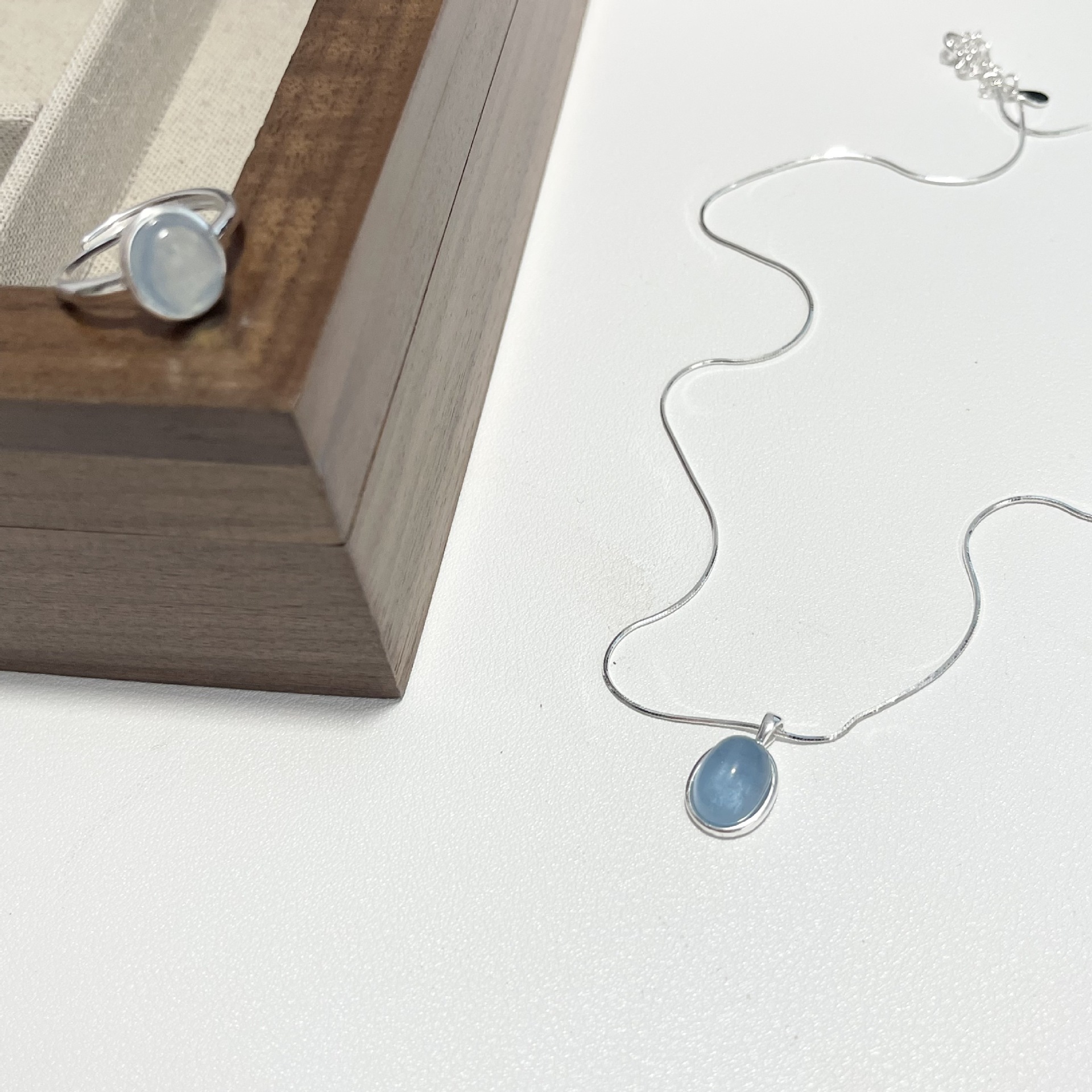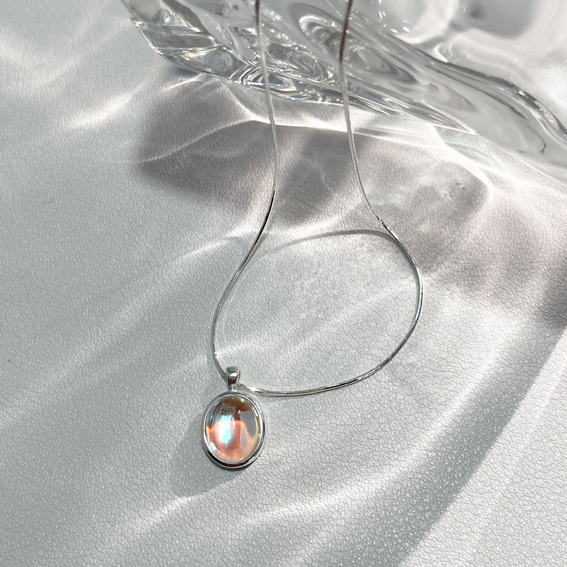 Vòng cổ bằng bạc 925 moonstone aquamarine vòng cổ cảm giác cao cấp của phụ nữ thích hợp chuỗi xương rắn chuỗi xương đòn chuỗi sản phẩm mới tất cả các trận đấu đồ trang sức