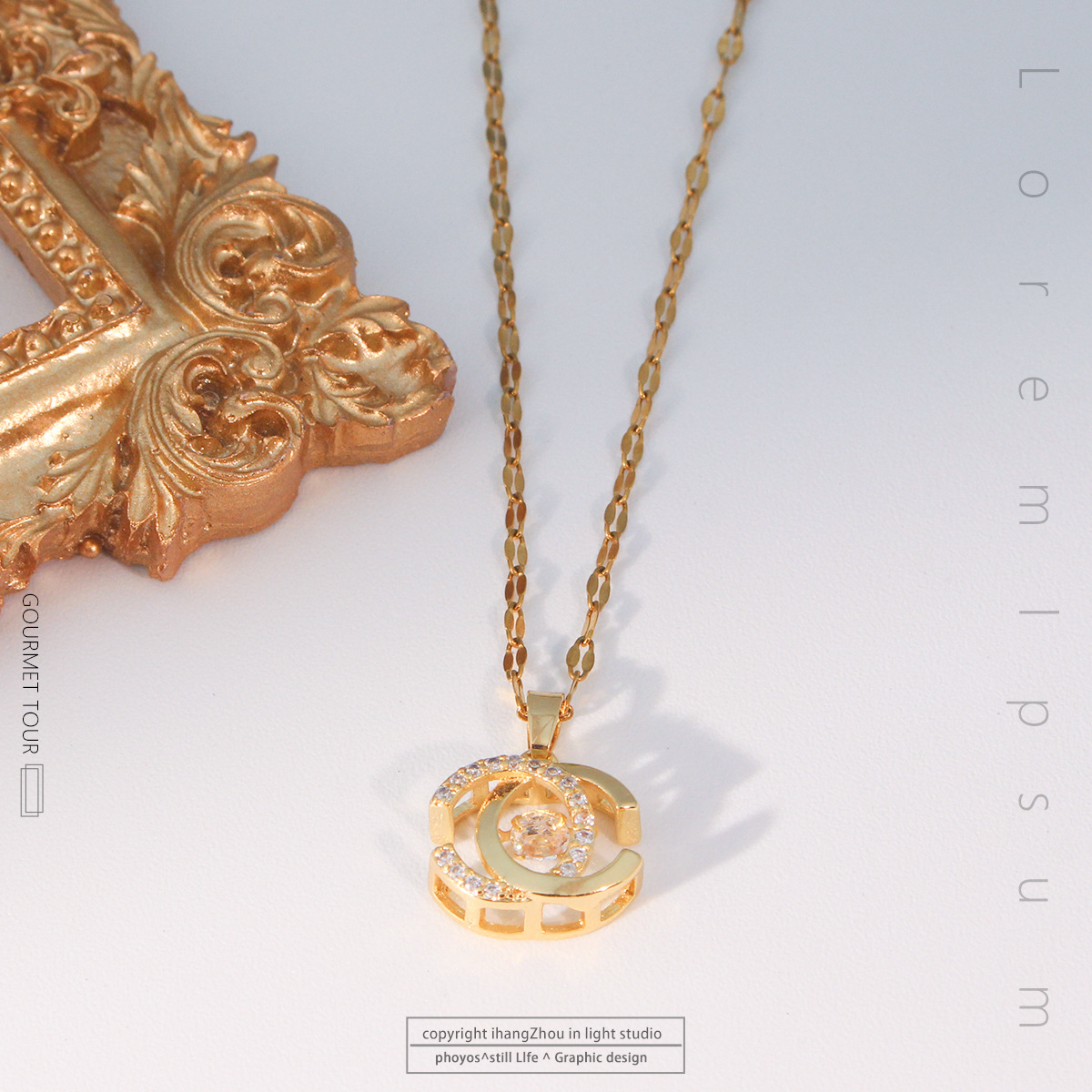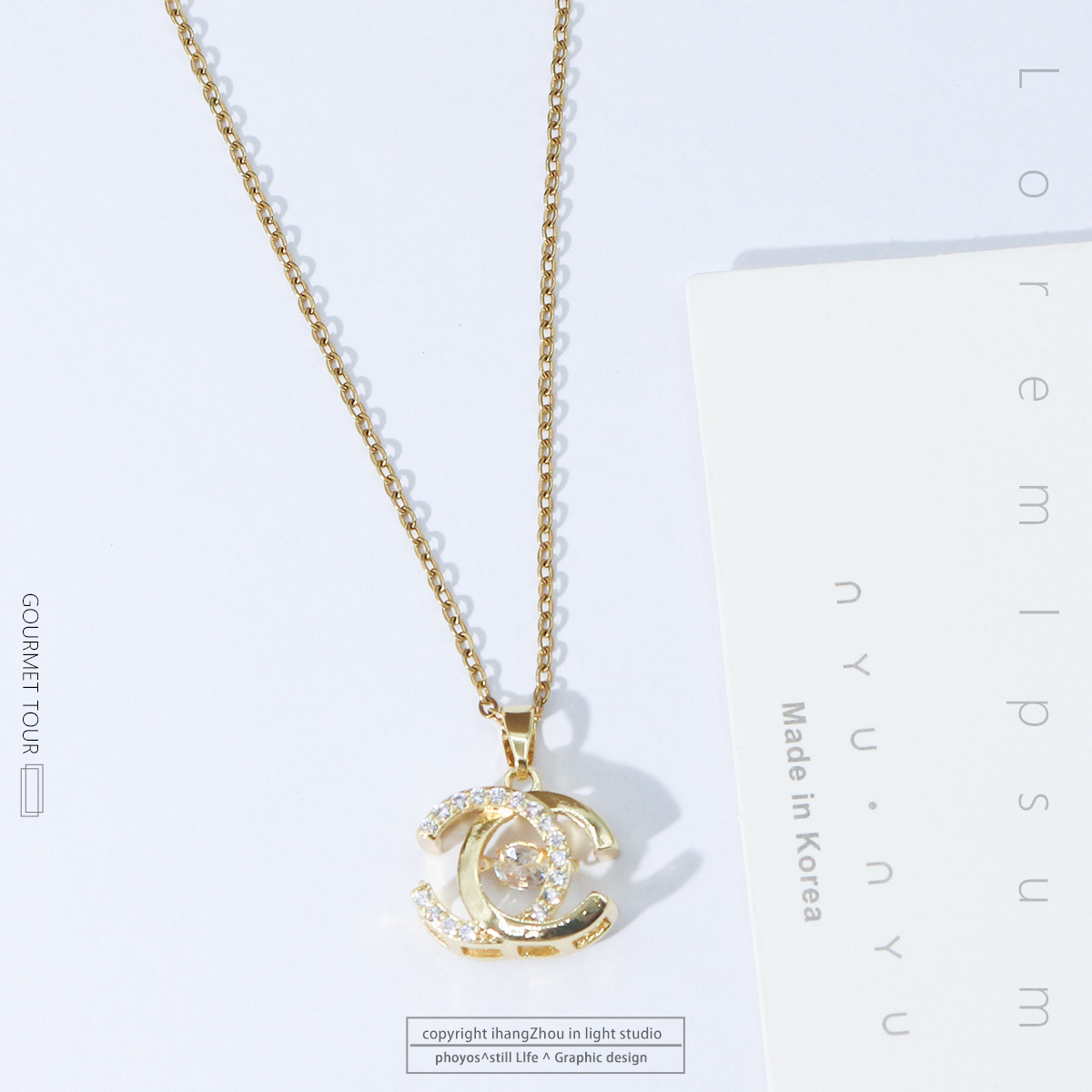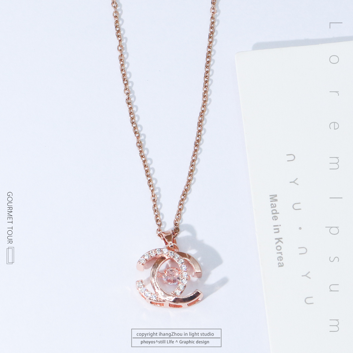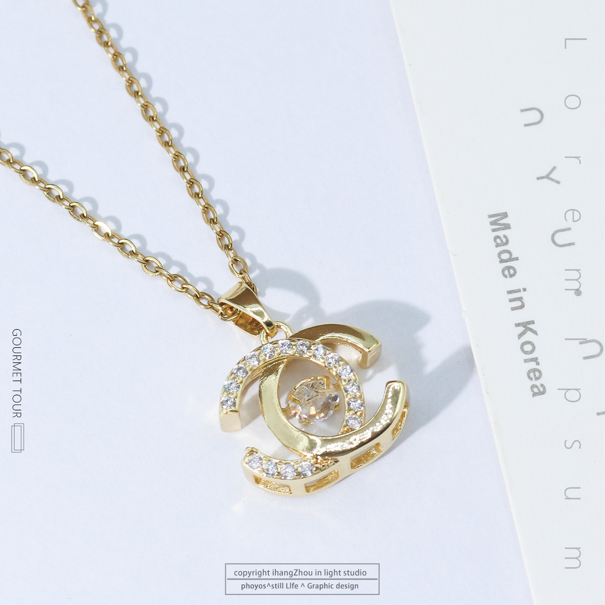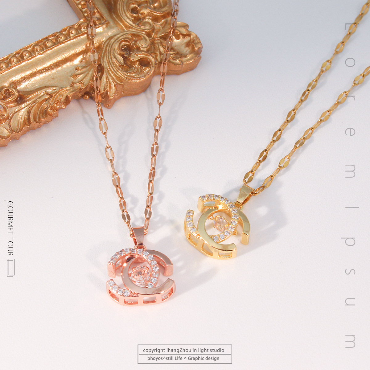 Vòng cổ bằng thép titan thông minh đôi c vòng cổ mới nóng bán phụ kiện của phụ nữ tất cả các trận đấu xương đòn dây chuyền vòng cổ zircon bán buôn mặt dây chuyền