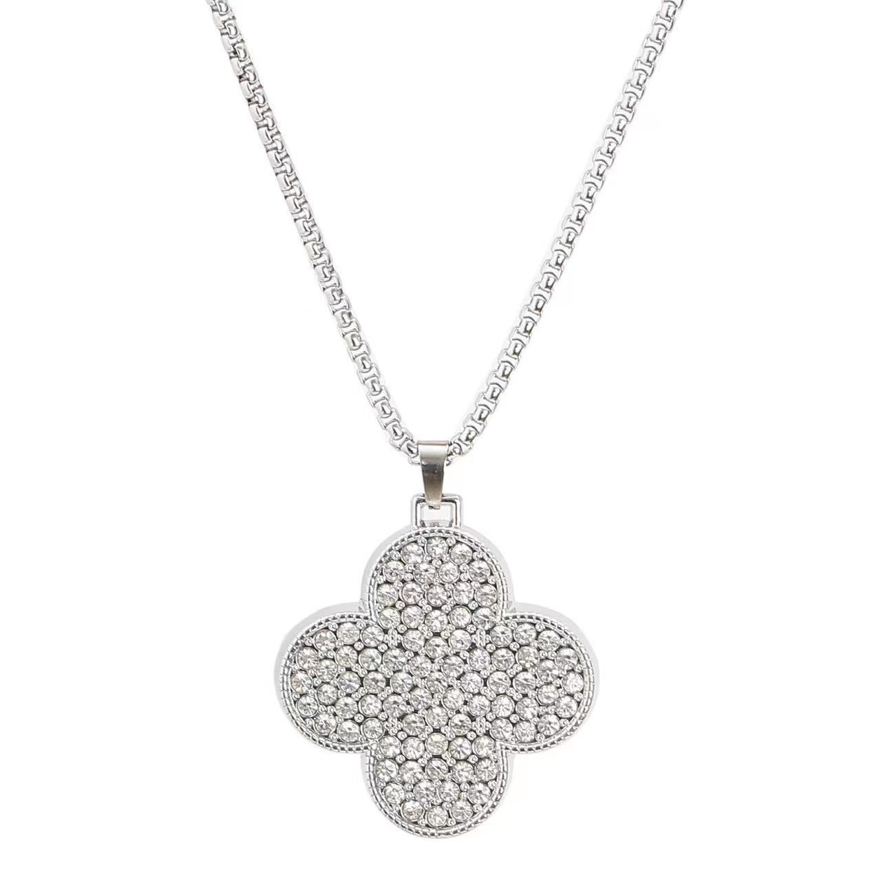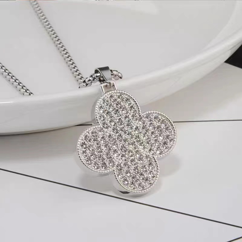 Vòng cổ cỏ bốn lá may mắn đính đá nữ phiên bản Hàn Quốc thiết kế đơn giản cảm giác áo len dài dây chuyền mặt dây chuyền trang sức mặt dây chuyền