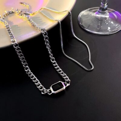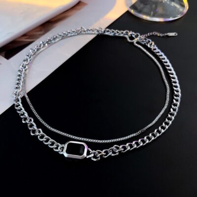 Vòng cổ đá quý đen hai lớp ins hốc gió lạnh áo len xương quai xanh chuỗi lưới đỏ cùng kiểu dáng thu đông Hàn Quốc vòng cổ nữ