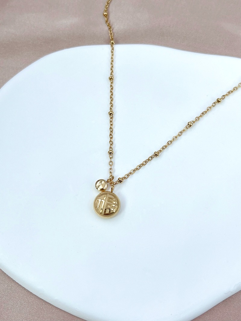 Vòng cổ hai mặt chữ may mắn phiên bản Hàn Quốc thép titan không phai ánh sáng sang trọng thích hợp chuỗi xương đòn cao cấp vòng cổ thiết kế độc đáo