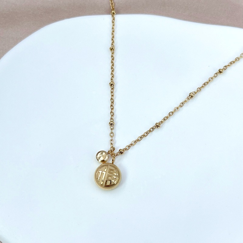 Vòng cổ hai mặt chữ may mắn phiên bản Hàn Quốc thép titan không phai ánh sáng sang trọng thích hợp chuỗi xương đòn cao cấp vòng cổ thiết kế độc đáo