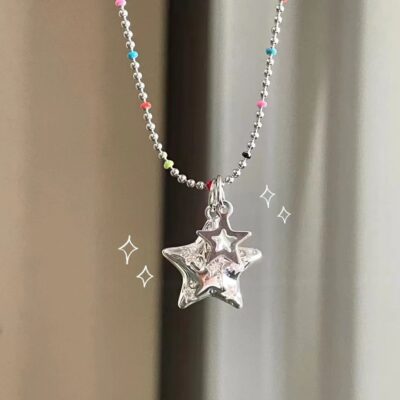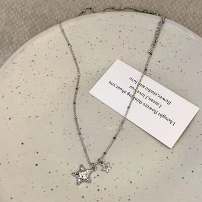Vòng cổ hạt đậu ngôi sao năm cánh đính đá phong cách mới ngọt ngào và mát mẻ màu kẹo đính cườm hai ngôi sao phụ kiện dây chuyền xương quai xanh