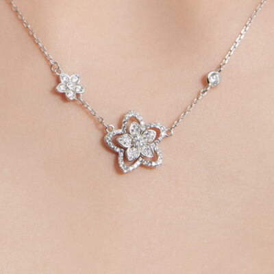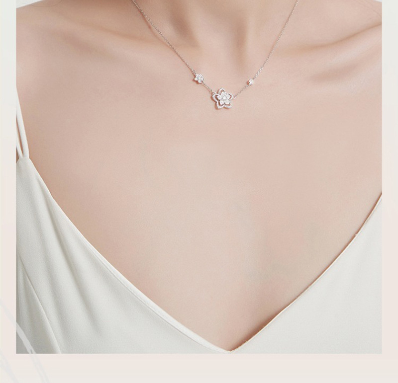 Vòng cổ hoa cho nữ Dây chuyền hoa xương đòn nhẹ sang trọng sang trọng Tính khí thép titan Khảm siêu nhỏ Dây chuyền hoa nhỏ kim cương đầy đủ Hợp thời trang