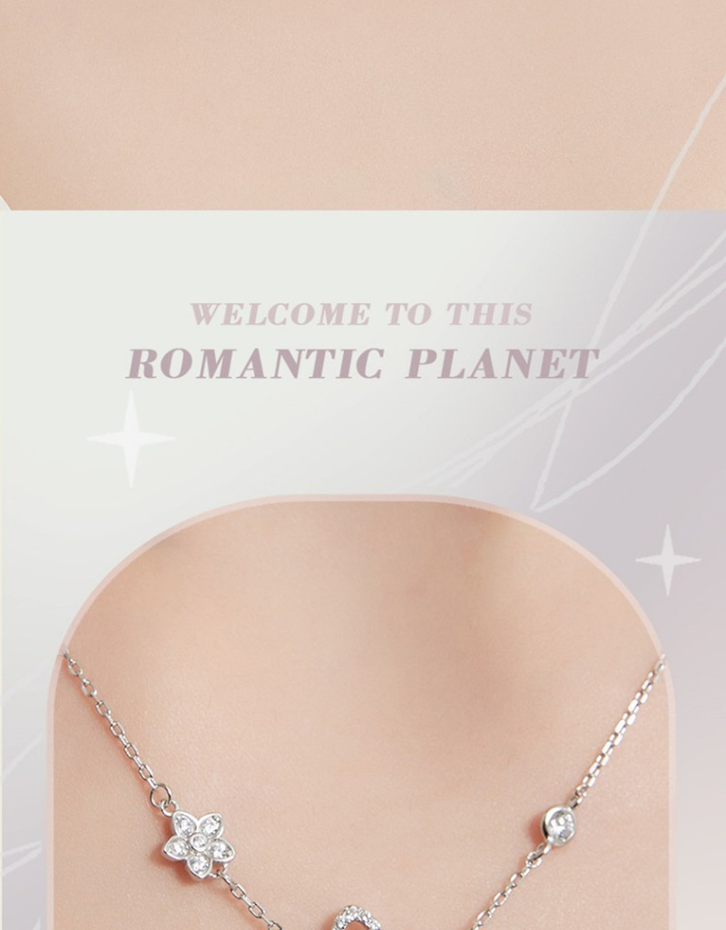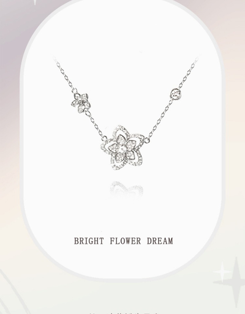 Vòng cổ hoa cho nữ Dây chuyền hoa xương đòn nhẹ sang trọng sang trọng Tính khí thép titan Khảm siêu nhỏ Dây chuyền hoa nhỏ kim cương đầy đủ Hợp thời trang