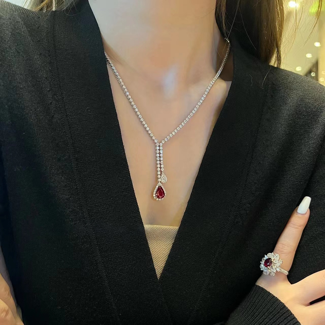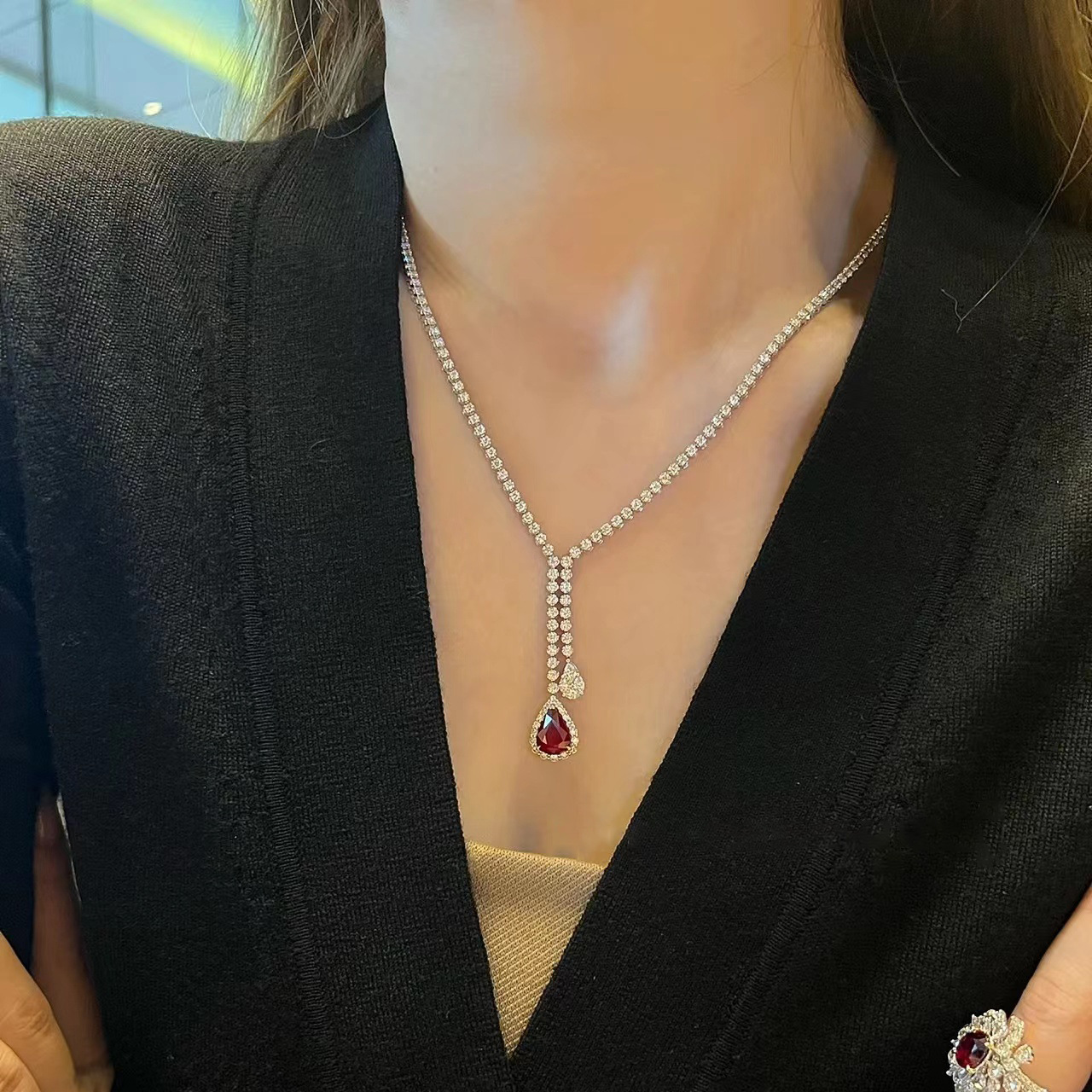 Vòng cổ hồng ngọc phù hợp với tất cả các kiểu thanh lịch và tinh tế dành cho nữ chuỗi xương đòn cao cấp màu đỏ lựu phát sóng trực tiếp vòng cổ nhỏ màu đỏ cuốn sách sang trọng