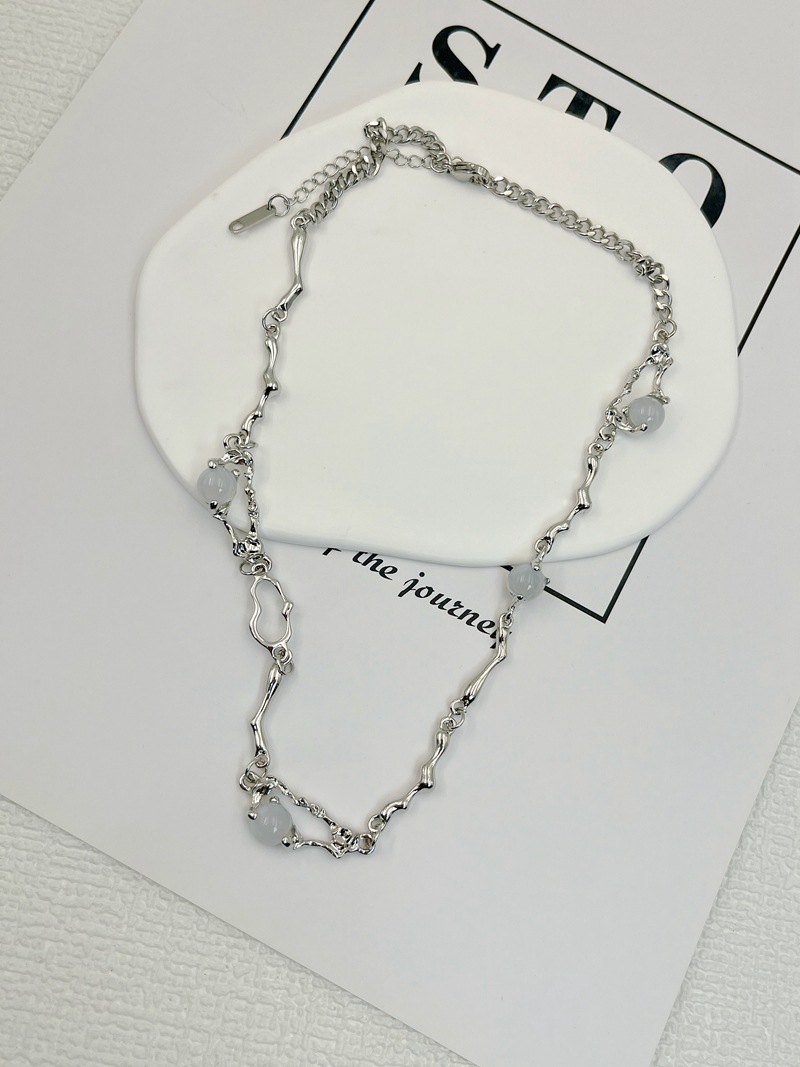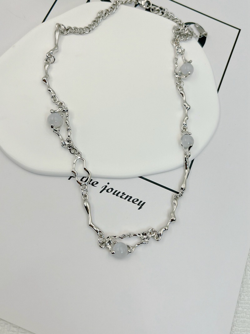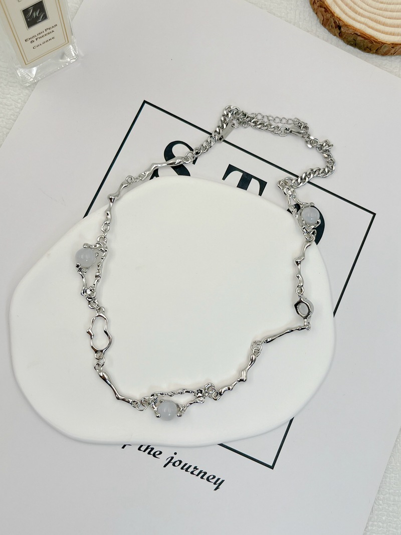 Vòng cổ khâu đính đá mặt trăng không đều Ánh sáng của phụ nữ Thiết kế hốc sang trọng Vòng cổ cảm giác cao cấp Gió mát Xu hướng phụ kiện mát mẻ ngọt ngào