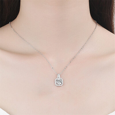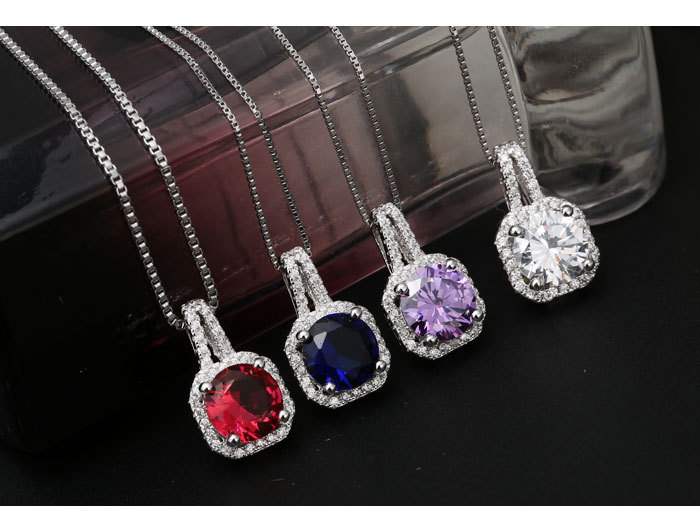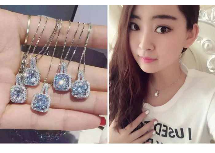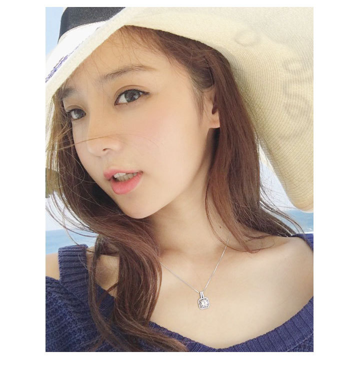 Vòng cổ ngắn mạ đồng mạ bạc nữ Hàn Quốc mặt dây chuyền kim cương hình vuông zircon sáng bóng dây chuyền xương quai xanh đơn giản của Nhật Bản và Hàn Quốc Bán chạy WeChat