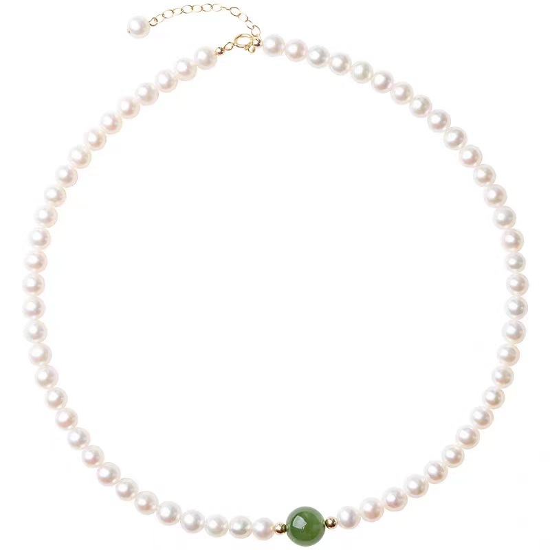 Vòng cổ ngọc trai nước ngọt Dây chuyền nữ Vòng cổ xương đòn bằng ngọc bích Hetian Mẹ chồng Mẹ chồng Phong cách của mẹ Hộp quà Quà tặng cho người lớn tuổi